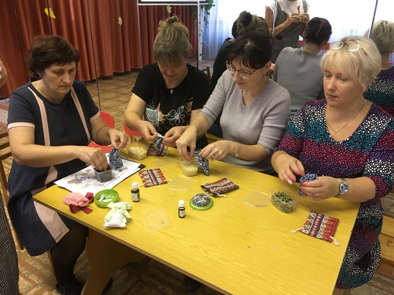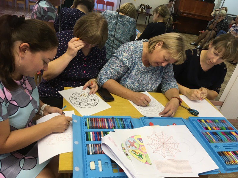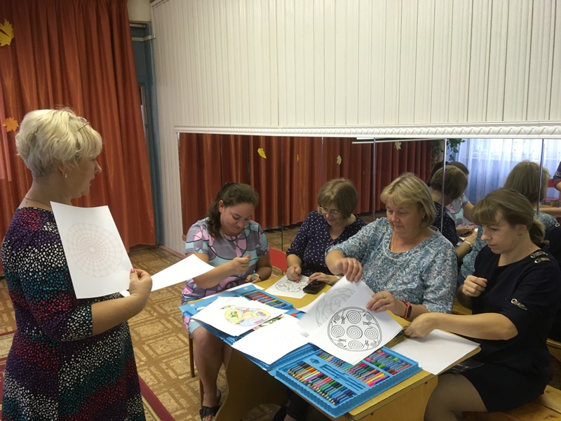 Педагоги детского сада участвовали в мастер-классах Елены Александровны Валовой "Изготовление аромасаше" и Будкиной Елены Сергеевны "Техника медиативного рисунка-мандала". Педагоги не только привлекли воспитателей к практической части, но и познакомили, как можно использовать ароматические саше и медиативные рисунки в работе с детьми и в личной жизни.