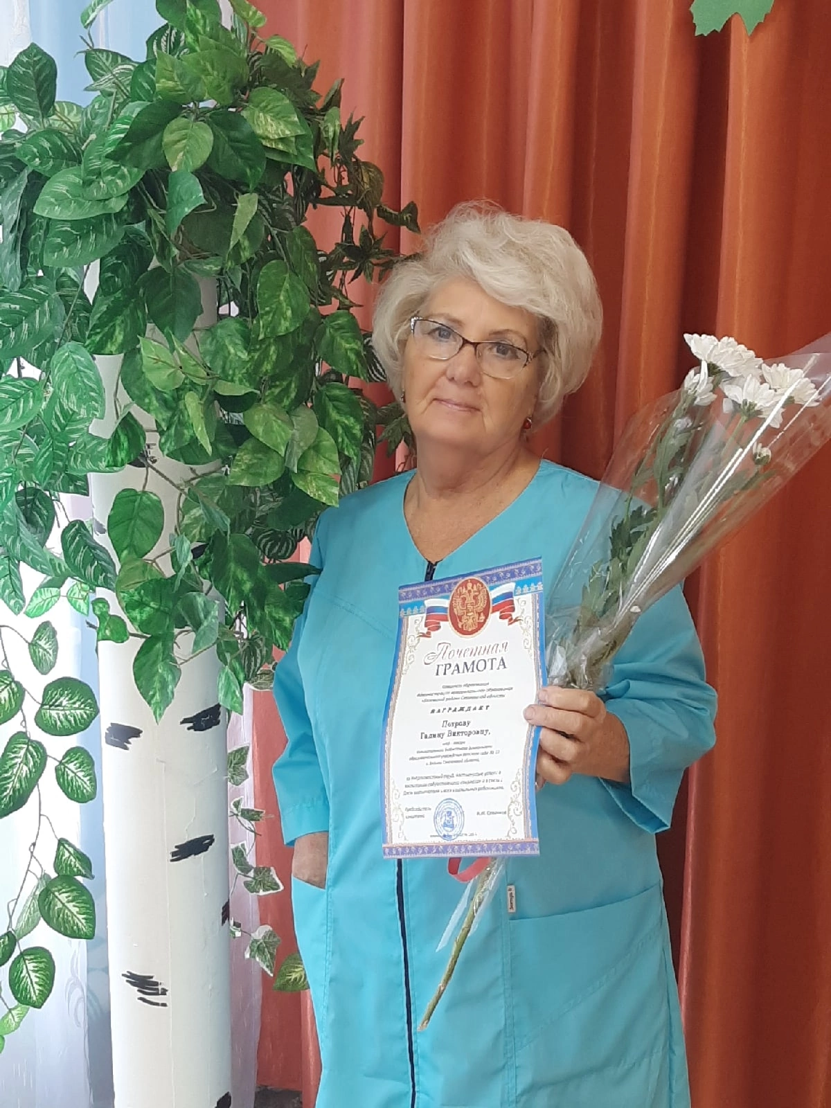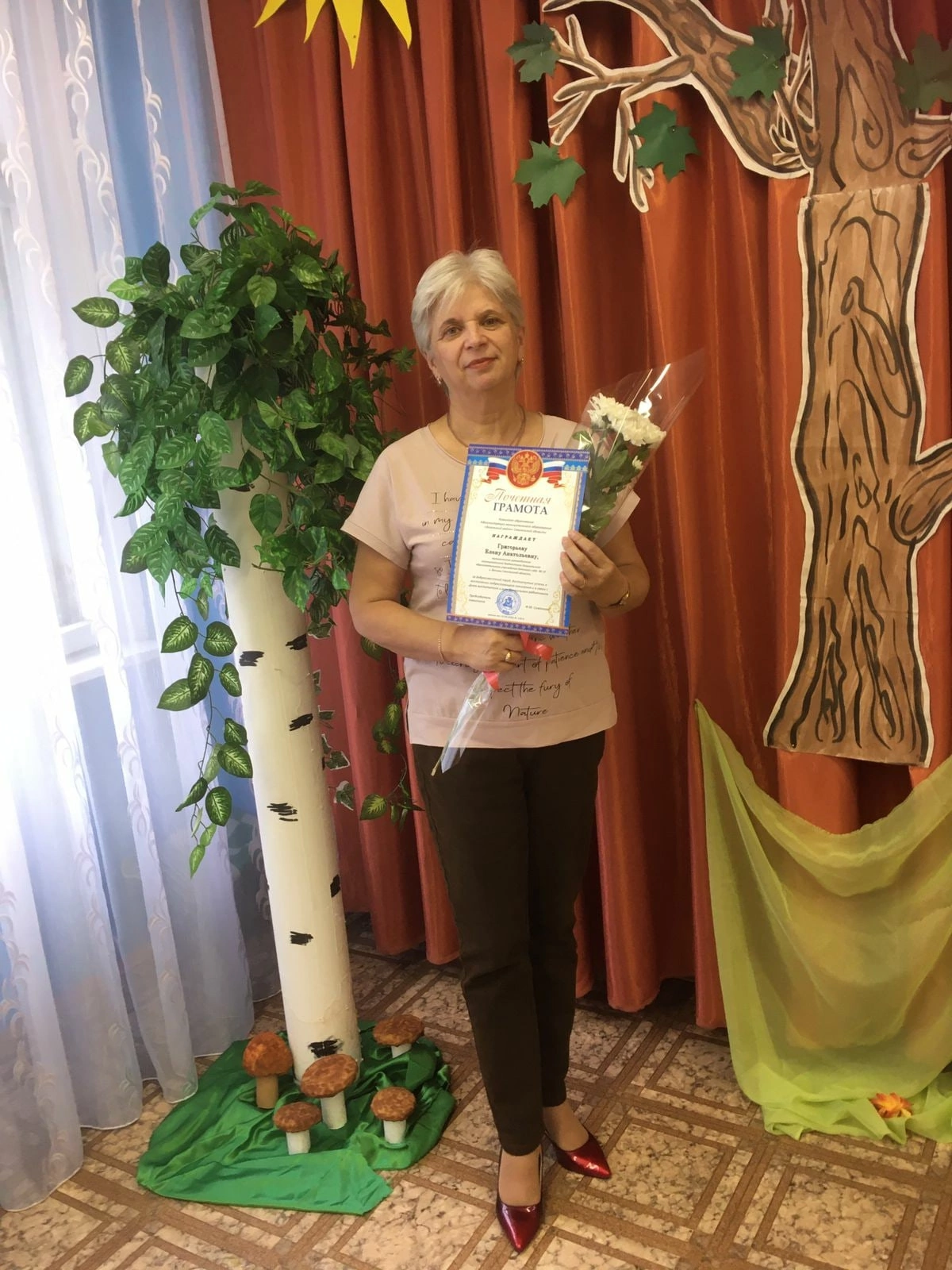 Почётными грамотами Комитета образования Администрации муниципального образования "Вяземский район" Смоленской области награждены воспитатель Грицкан Ю.Ю., музыкальный руководитель Григорьева Е.А., шеф-повар Петрова Г.В., младший воспитатель Дулова С.А., уборщик служебных помещений Агеева Н.Е.