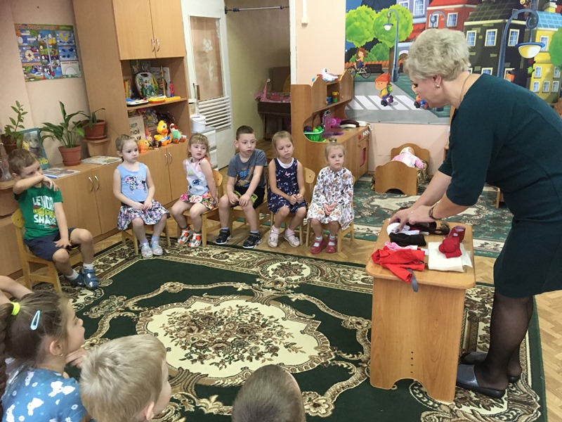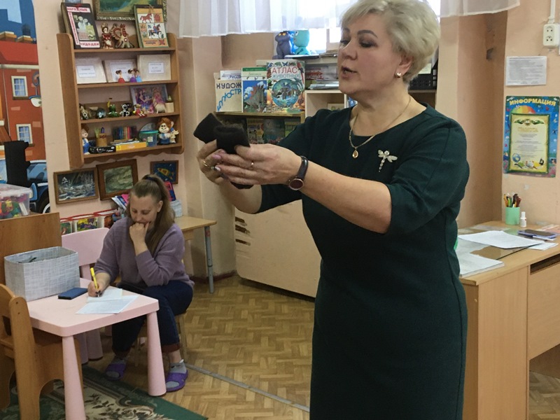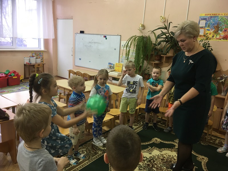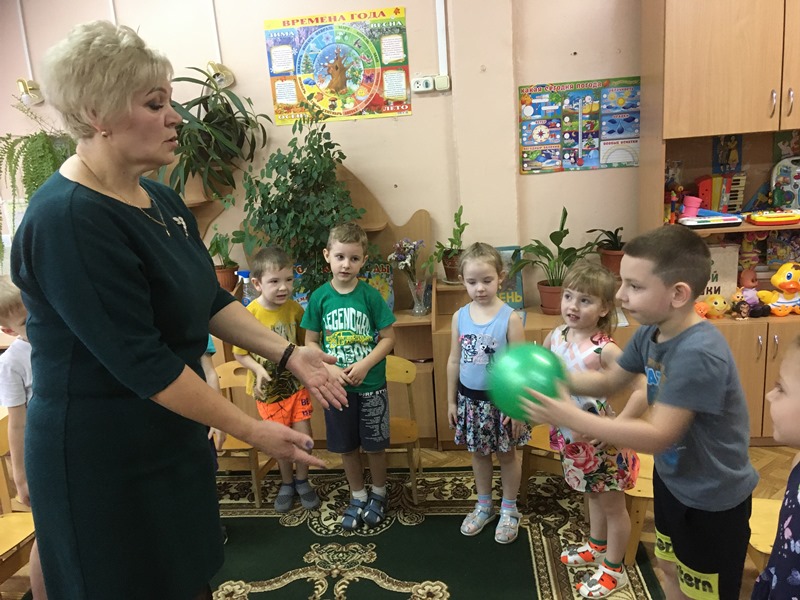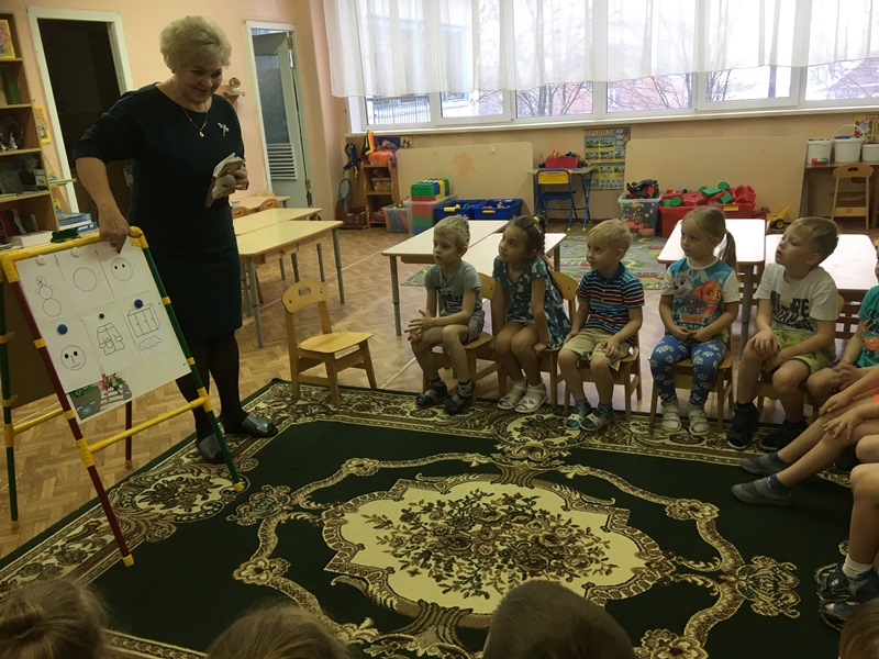 В старшую группу №9 педагог-наставник Петрова Светлана Вячеславовна пригласила малоопытных педагогов на занятие по развитию речи «Пересказ рассказа Н. Калининой «Про снежный колобок». В речевых играх, с использованием элементов кукольной одежды, в играх с мячом дети учились правильно употреблять существительные и прилагательные в своей речи.