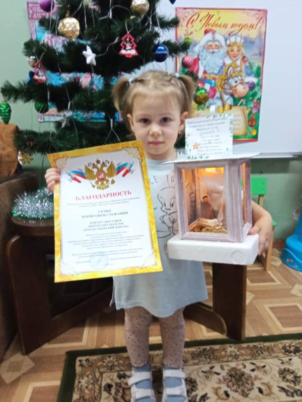 Семьи - участники выставки перед началом новогодних утренников получили благодарности за родительскую активность, приобщение детей к традициям и праздникам православной культуры, умение вовлечь ребенка в мир художественного сотворчества, познания своих первых личных возможностей, проявленные фантазию, мастерство.