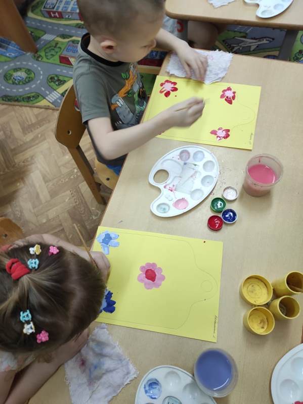 В группе №9 "Непоседы" дети продолжают знакомиться с русским народным художественным промыслом - городецкой росписью. Посмотрите, как ярко и лаконично расписаны "доски". Дети закрепили названия элементов росписи. С увлечением смешивали краски на палитре, добиваясь нужных оттенков.