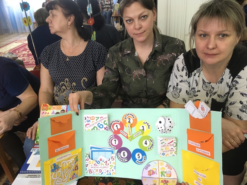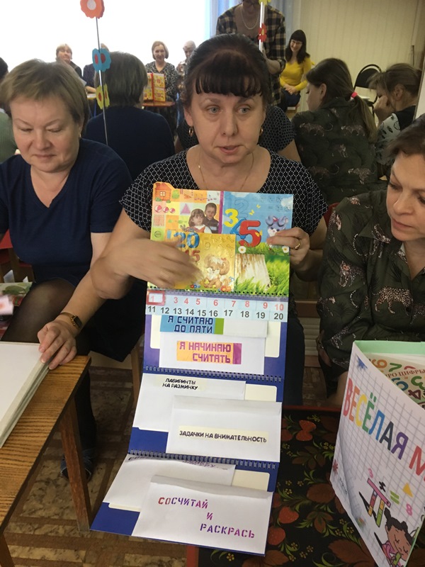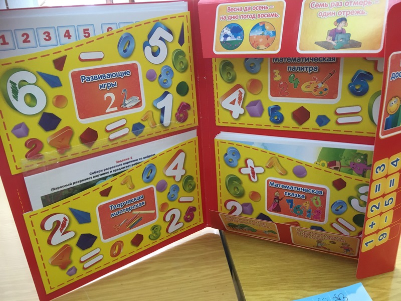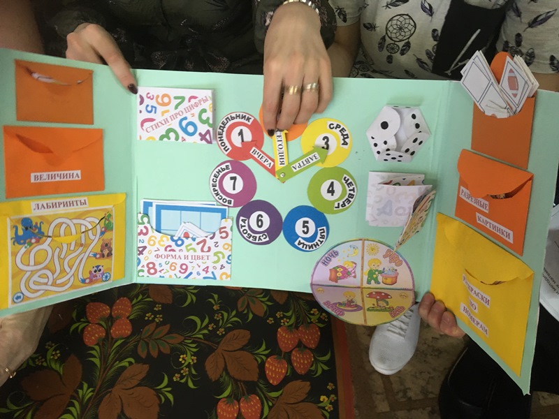Завершающей частью педагогического совета стала презентация педагогов по использованию пособия "Лэпбук по математике для детей 3-7 лет". Были предложены разные варианты оформления, использования их на занятиях, в свободных играх детей, в самостоятельной деятельности. В интересных темах отражено содержание "Занимательная математика для самых маленьких", "Люблю цифры", "Математика вокруг нас", "Считаю, играю, решаю", "Веселая математика", "математический магазин игрушек" и другие
