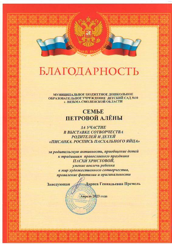 Поздравляем призеров и участников выставки за родительскую активность, приобщение детей к традициям православного праздника Пасхи Христовой, умение вовлечь ребенка в мир художественного сотворчества, проявление фантазии и оригинальности!
