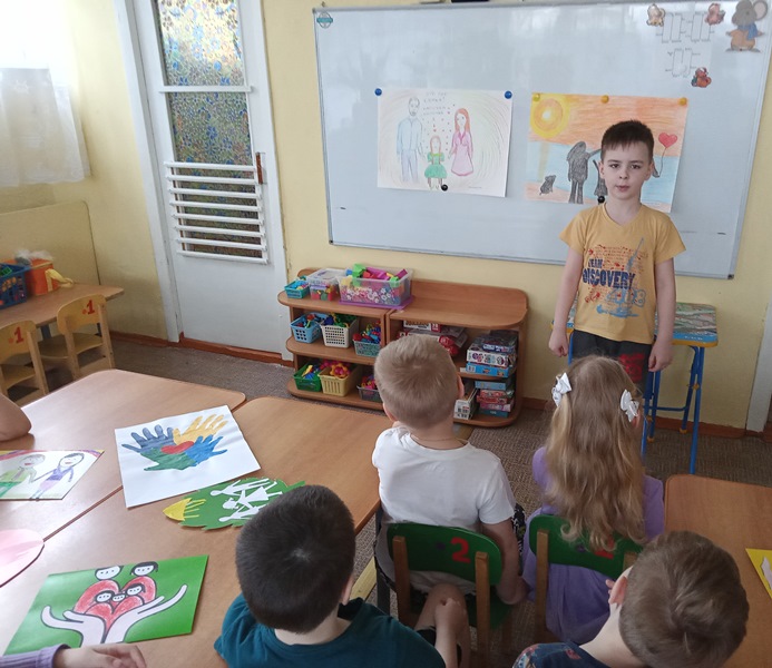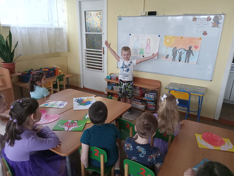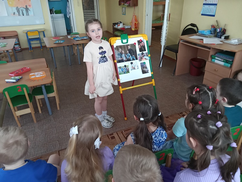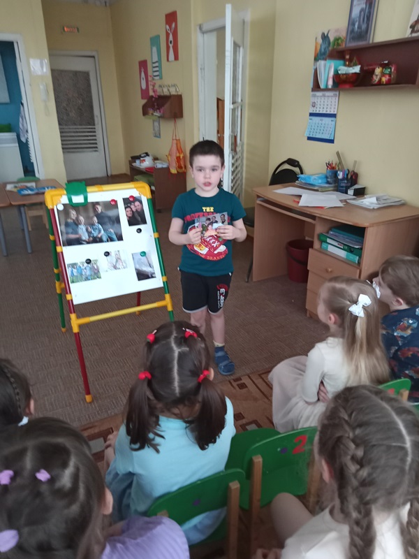 В таком занятии участвовали старшие дошкольники под руководством воспитателя Филимоновой Натальи Викторовны. У детей сформировано правильное представление о семье, роли матери, отца, дедушки, бабушки, сестры, брата, которые живут вместе, любят и заботятся друг о друге.