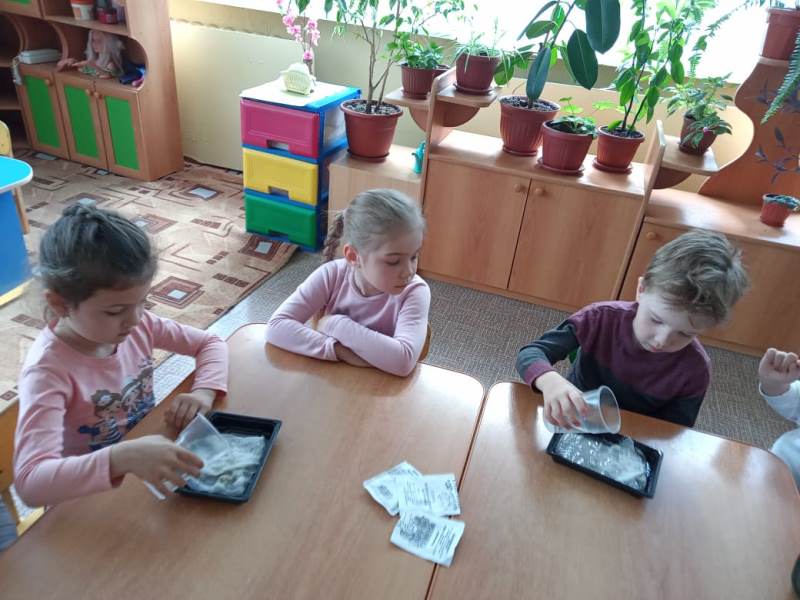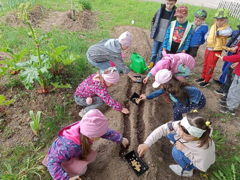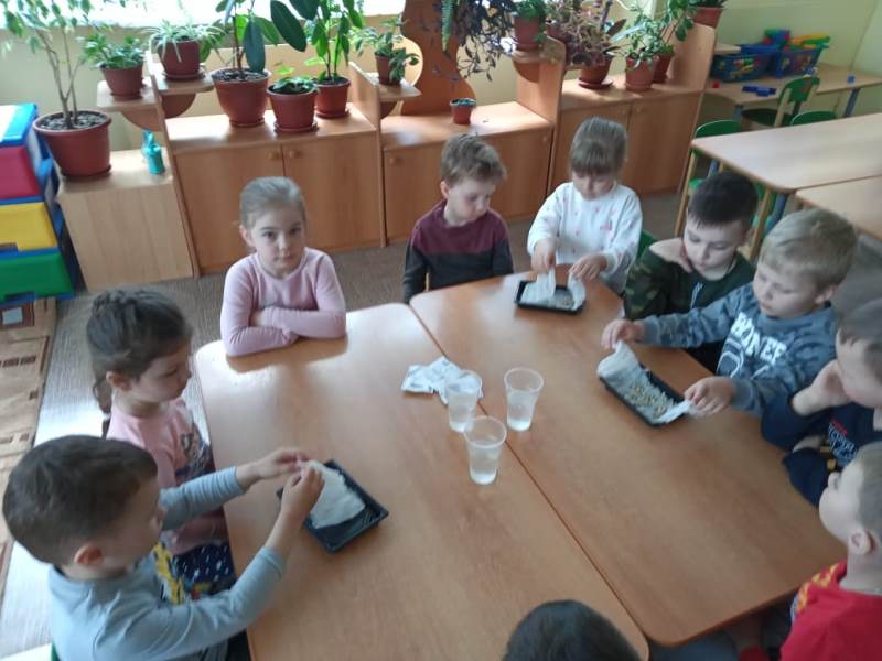 В старшей группе №11 дети участвовали в системе занятий по экологическому и трудовому воспитанию с элементами экспериментирования "Посадка семян гороха".