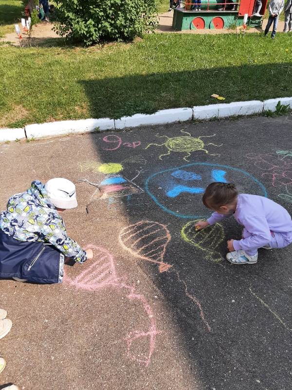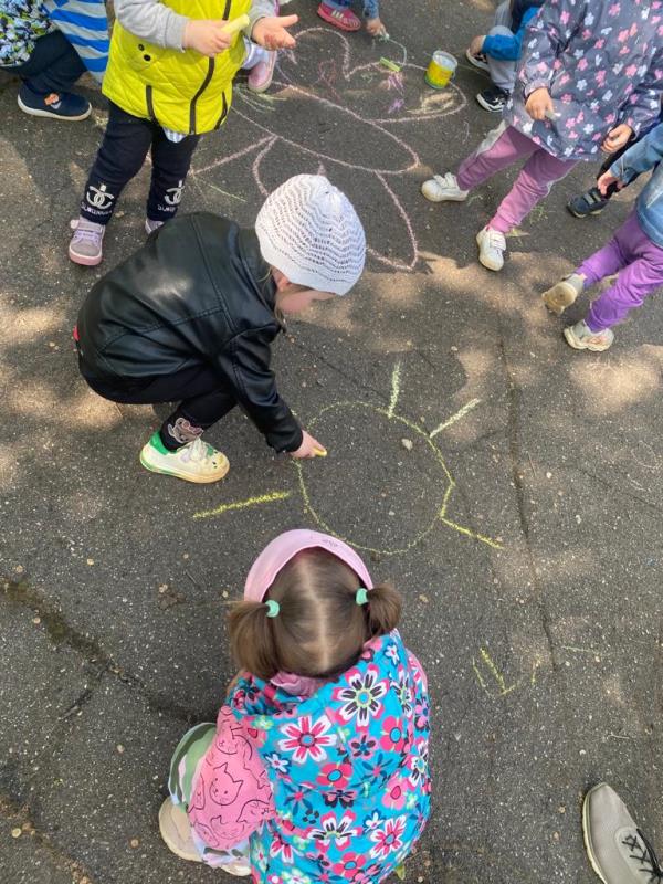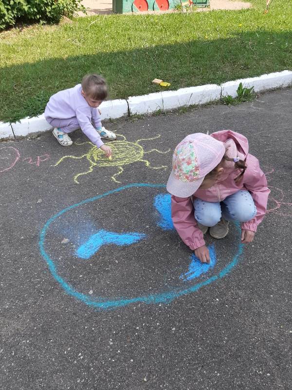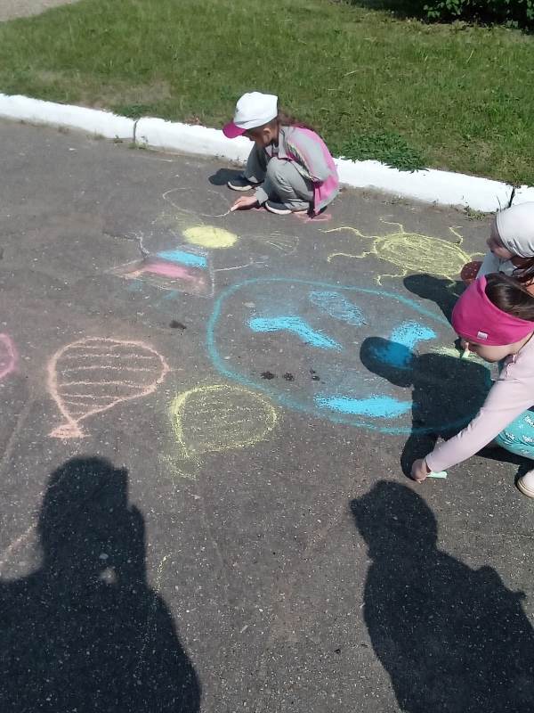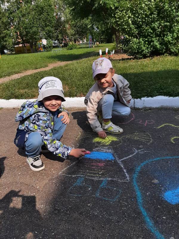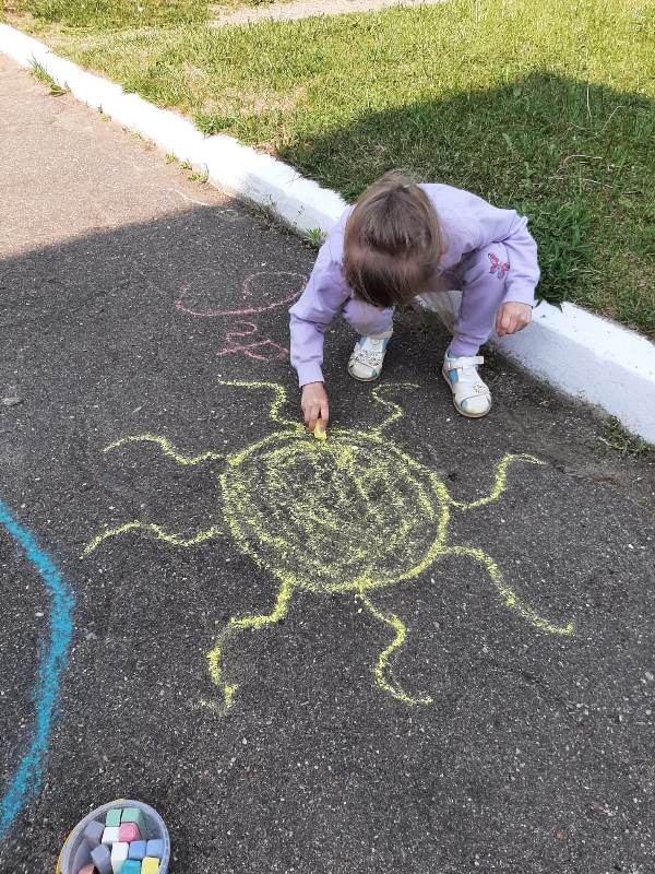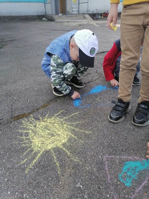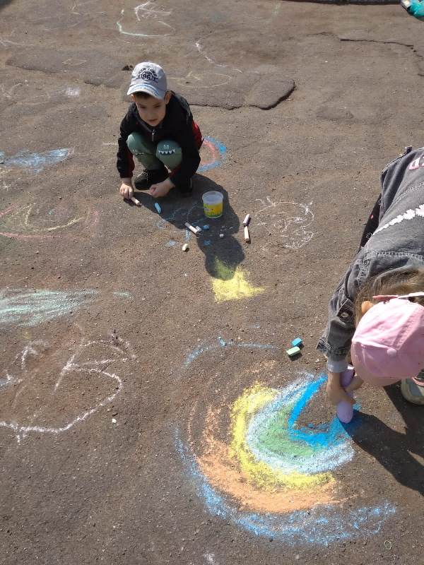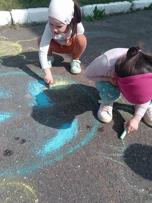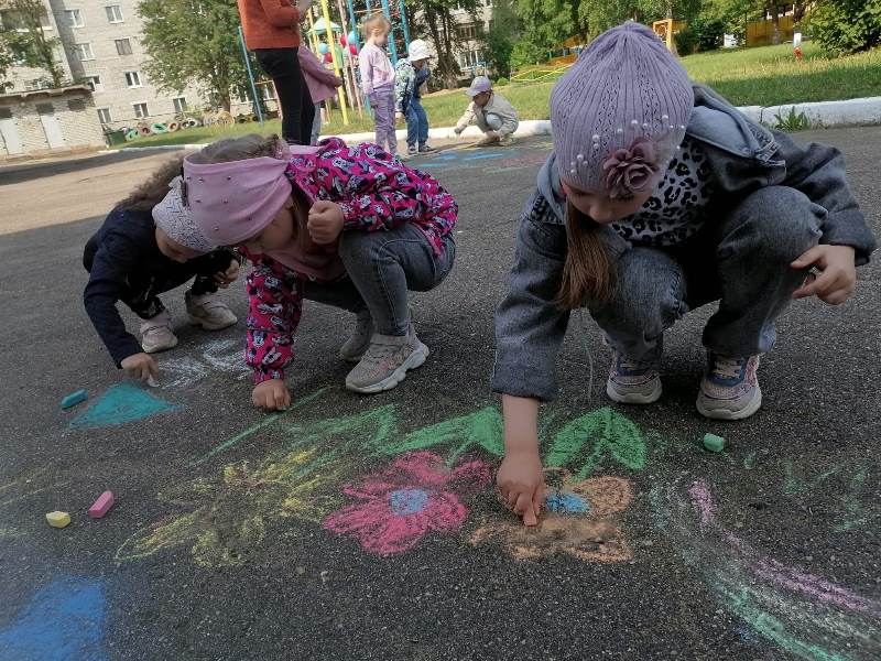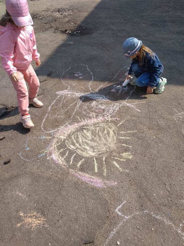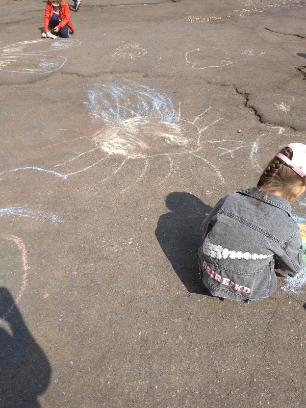 Мелком рисуют на асфальте,