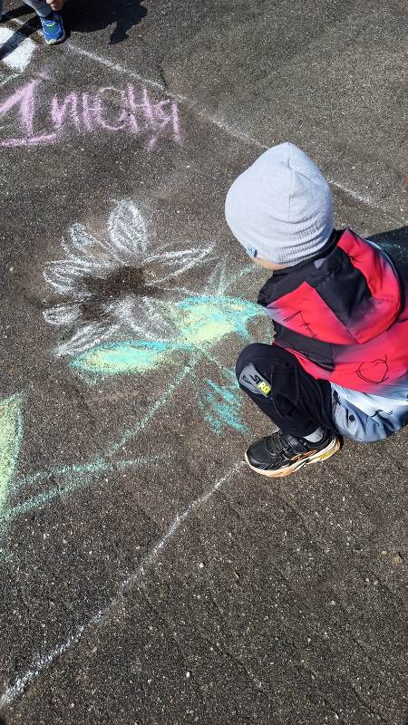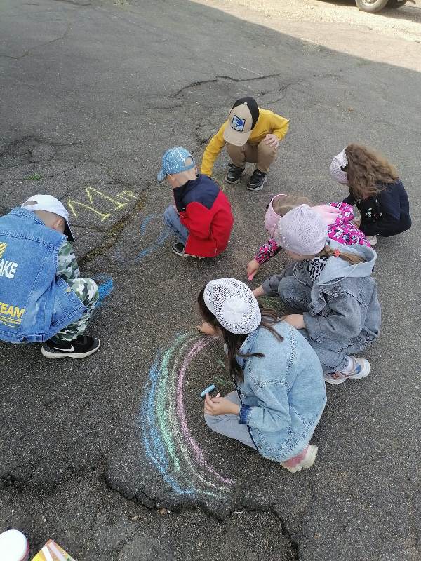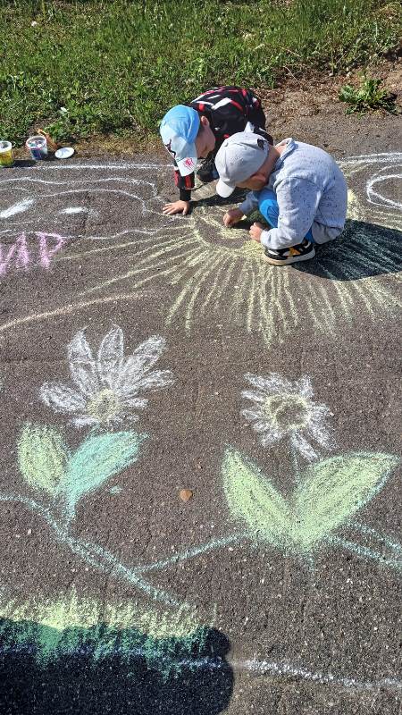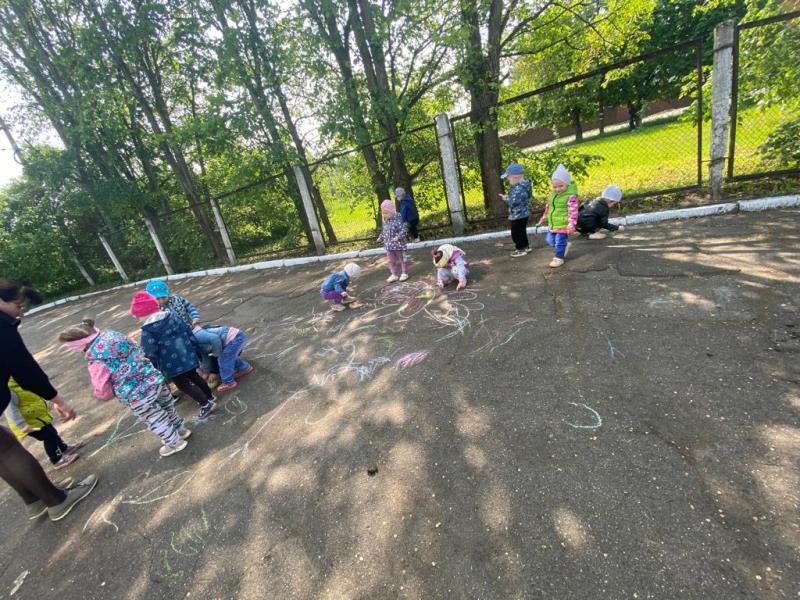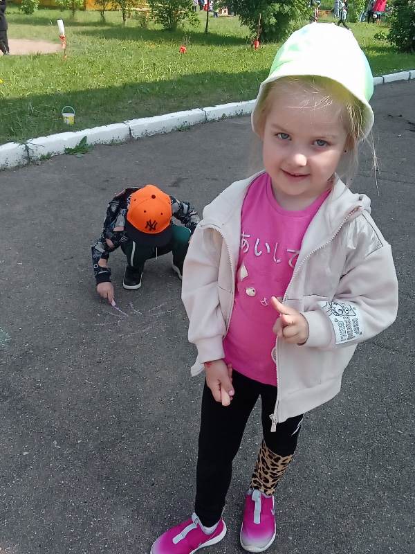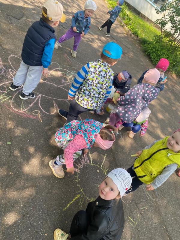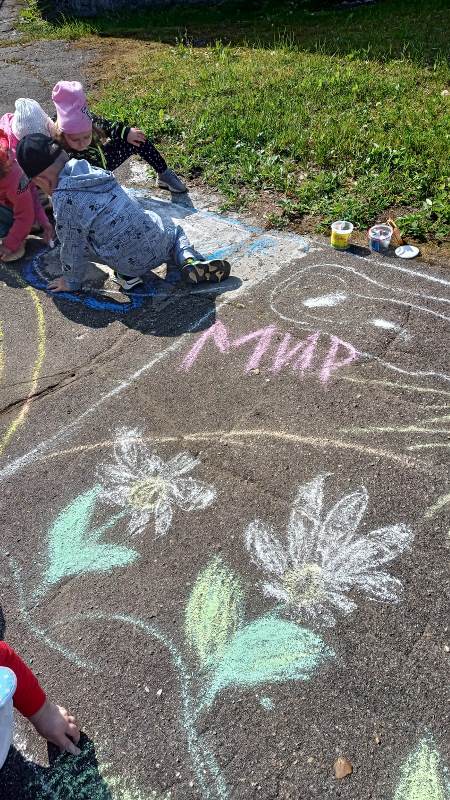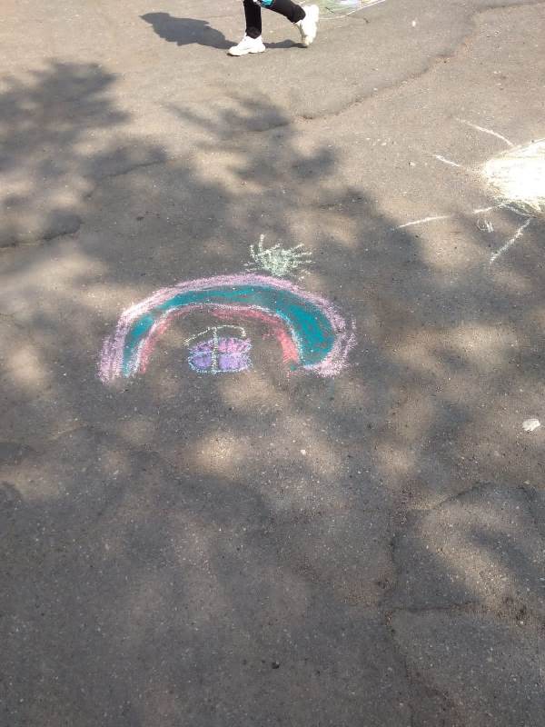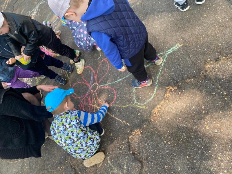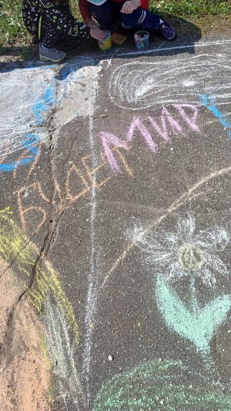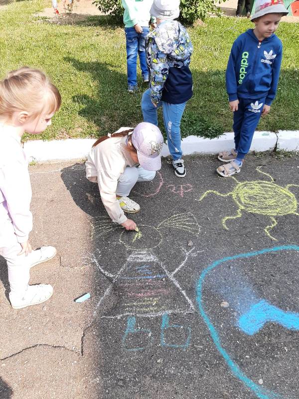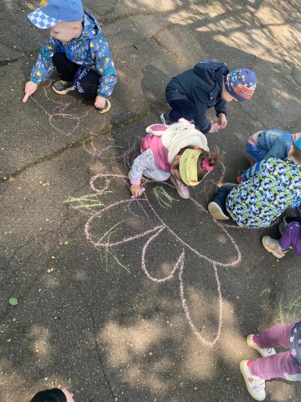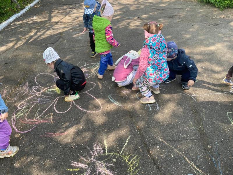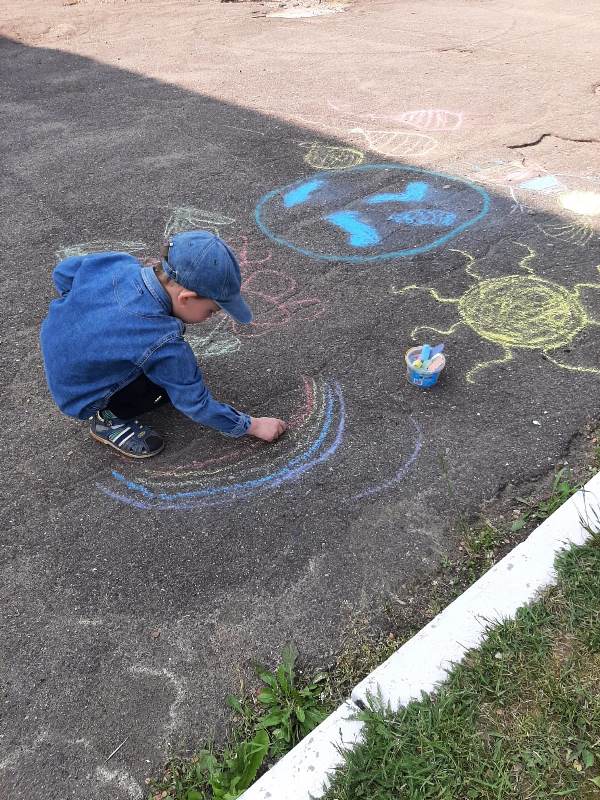 Мелком рисуют на асфальте,