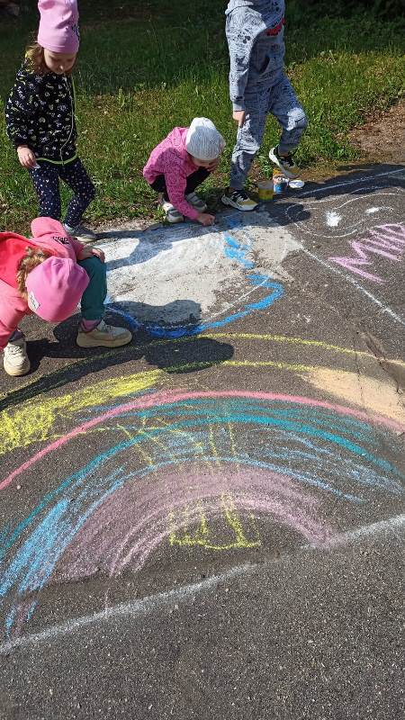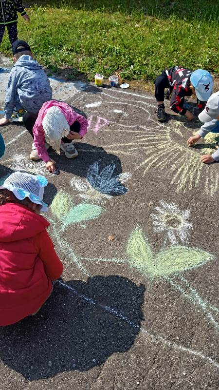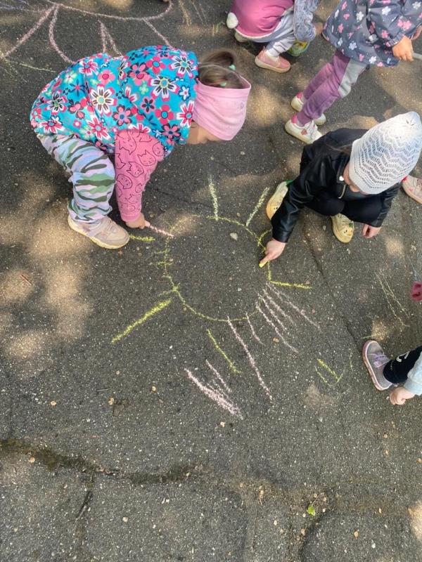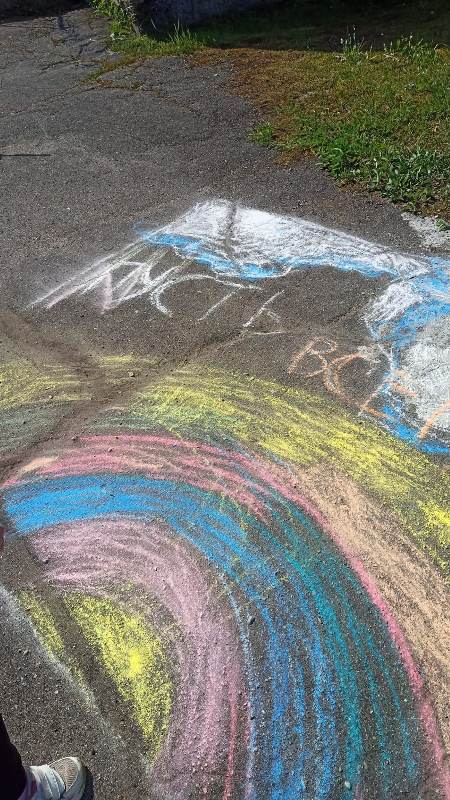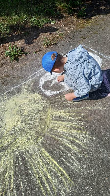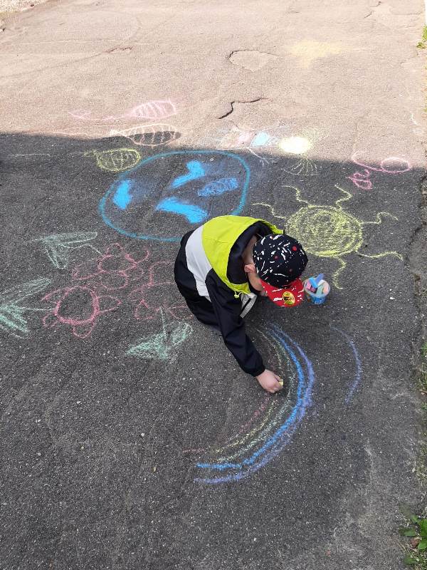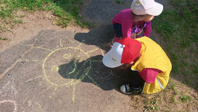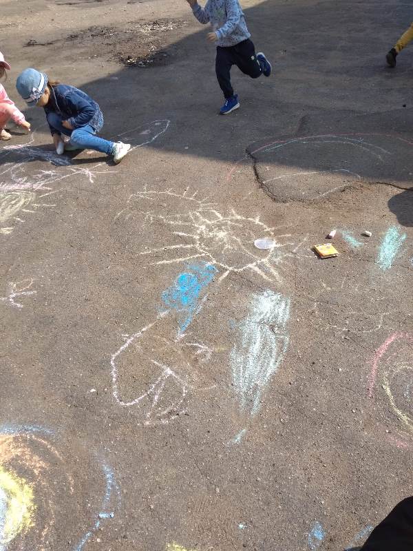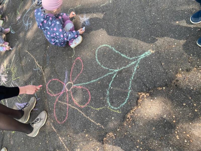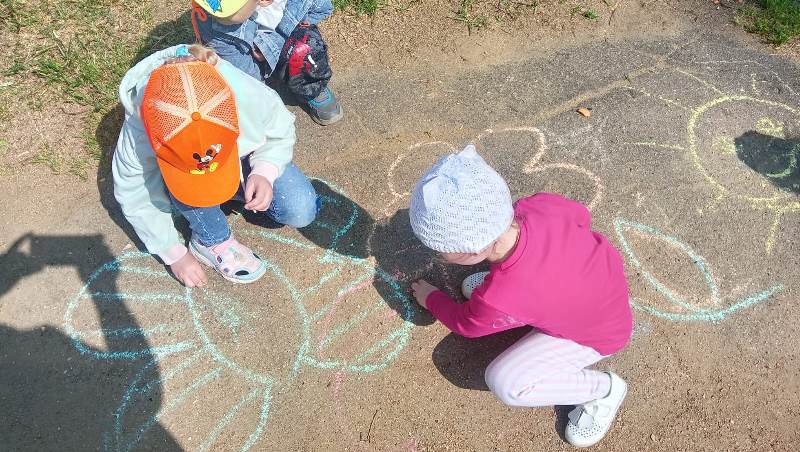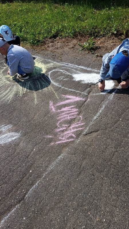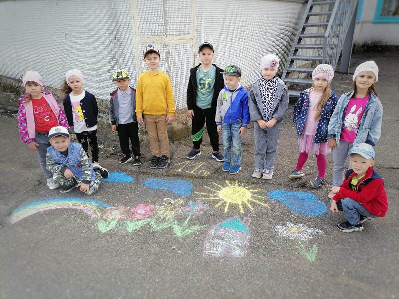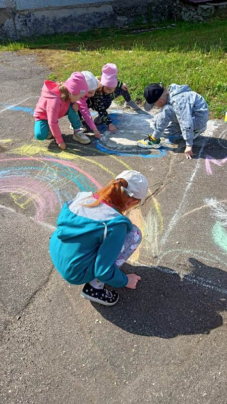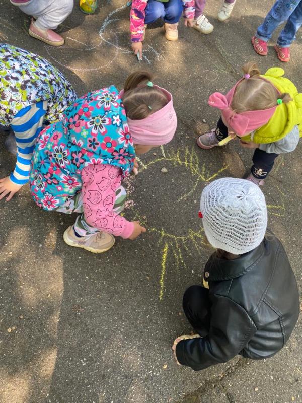 Мелком рисуют на асфальте,