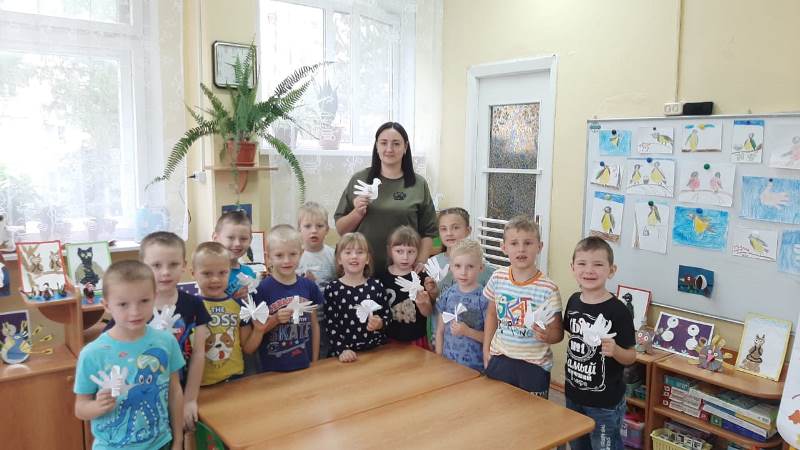 Финалом встречи стало изготовление поделок из бумаги "Голубь мира».