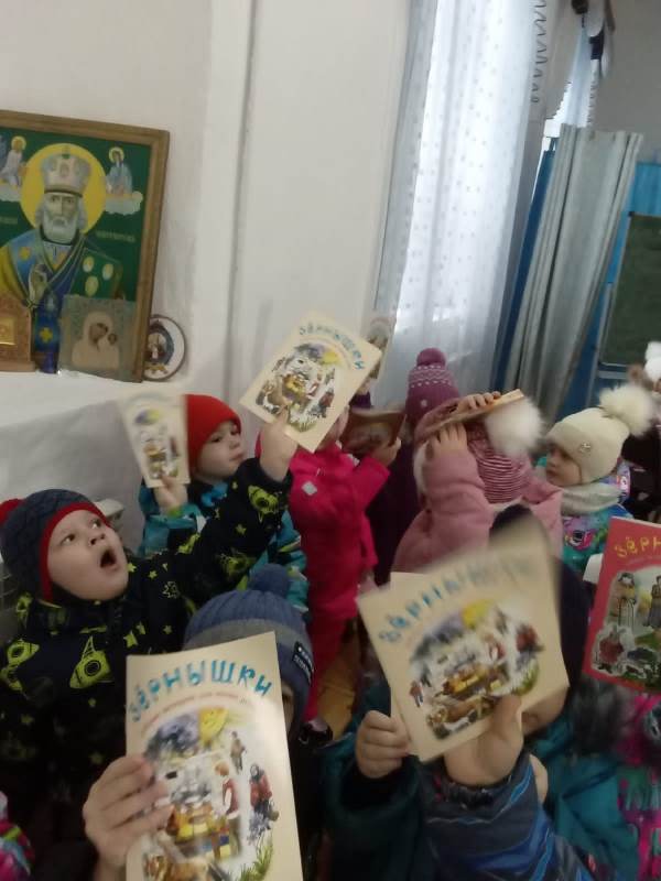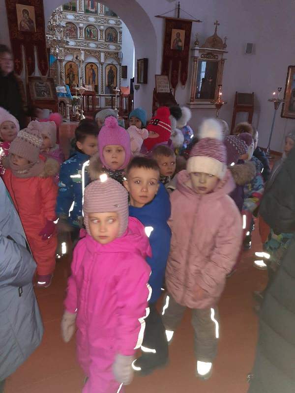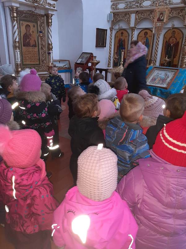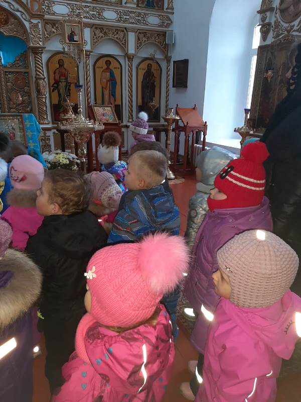 Дети старших групп №5 и №6 с воспитателями Котовой Натальей Анатольевной, Войновой Ириной Вячеславовной в сопровождении родителей посетили Церковь в честь Введения во храм Пресвятой Богородицы и Воскресную школу. Преподаватель Милюкова Ирина Евгеньевна познакомила детей с работой Воскресной школы, кто и чем в ней занимается. Дети поиграли в дидактическую игру, рассмотрели поделки воспитанников Воскресной школы. Педагог провела экскурсию в церкви, объяснила, что такое храм, и в честь кого он построен. Дети и взрослые смогли полюбоваться убранством храма, зажечь свечи, рассмотреть иконы. Познакомились с некоторыми иконами, узнали, что такое Алтарь, Иконостас, Пресвятая Троица. В итоге встречи детям подарили книги «Евангелие для малышей».