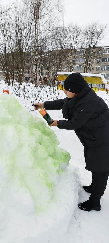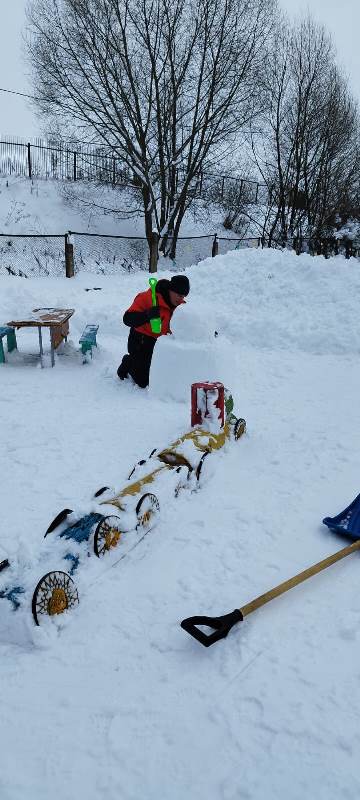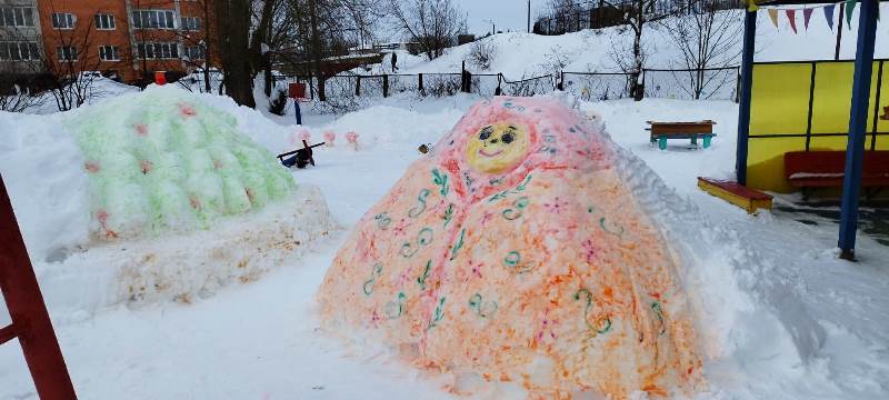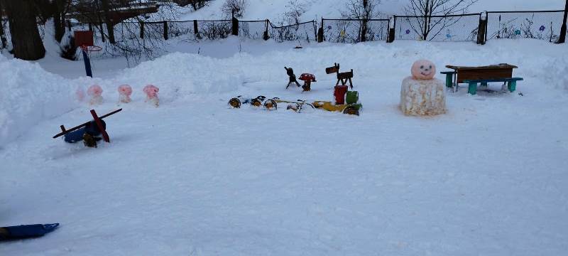 Используя удивительный материал – снег, родители погрузились в процесс совместного творчества, сооружая необыкновенные снежные фигуры. Участок детского сада стал похож на снежное царство! Снежные скульптуры украшают участок, вызывая у детей положительный эмоциональный настрой, желание идти на прогулку. Зимнее убранство поднимает настроение детям, позволяет вдоволь насладиться снежными забавами. Дети с удовольствием обыгрывают снежные постройки, которые не только вносят разнообразие в детские игры, но и развивают художественный вкус и стимулируют двигательную активность малышей.