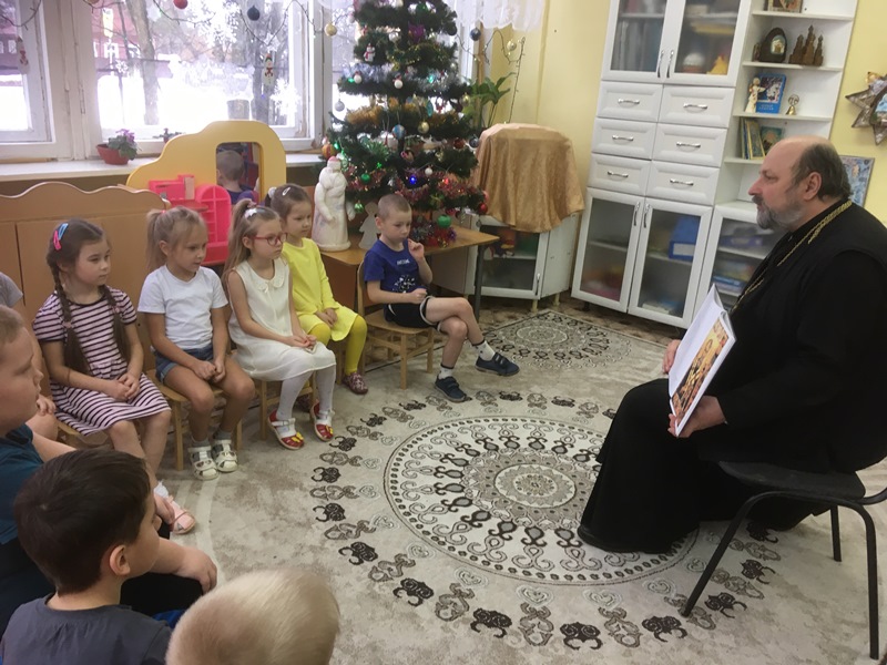 Дружба детского сада №10 с о.Олегом продолжается. Всегда ждем нашего уважаемого батюшку в гости. Его рассудительные, разумные объяснения, беседы, спокойный тон, неравнодушие, отзывчивость находят отклик в душах взрослых и детей.