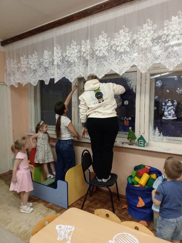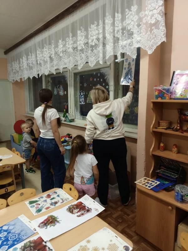 Не нарушая традиций семейного клуба "Радуга", родители детей средней №10 создавали предпраздничное настроение для детей, украсили группу и окна.