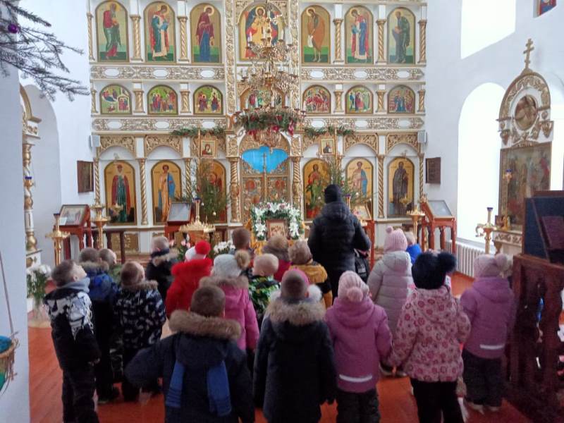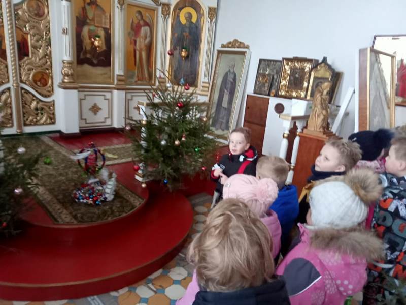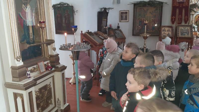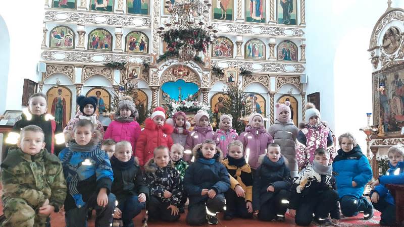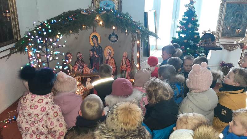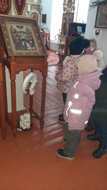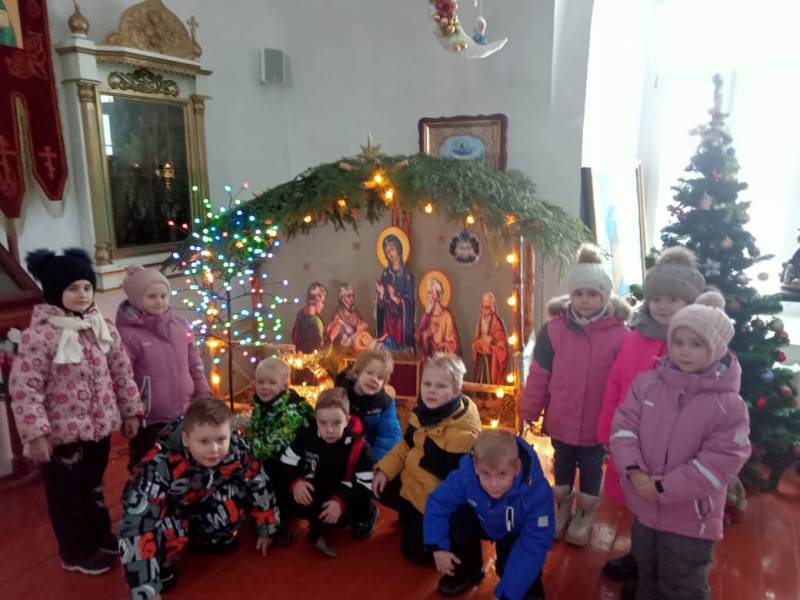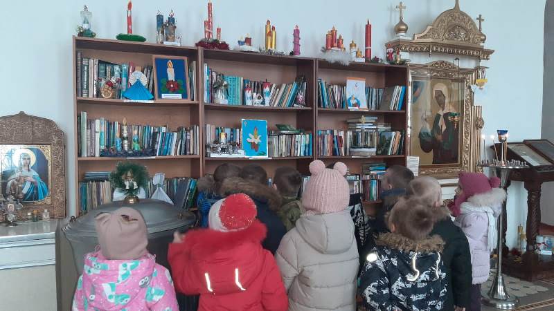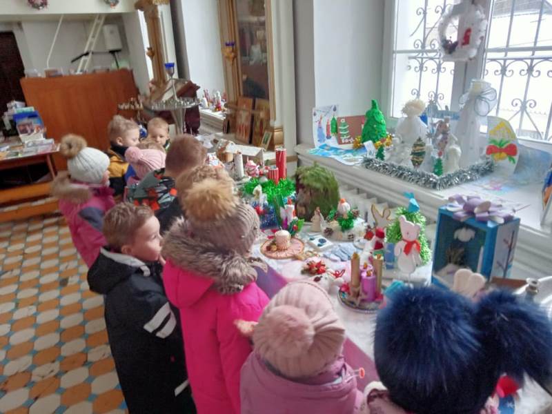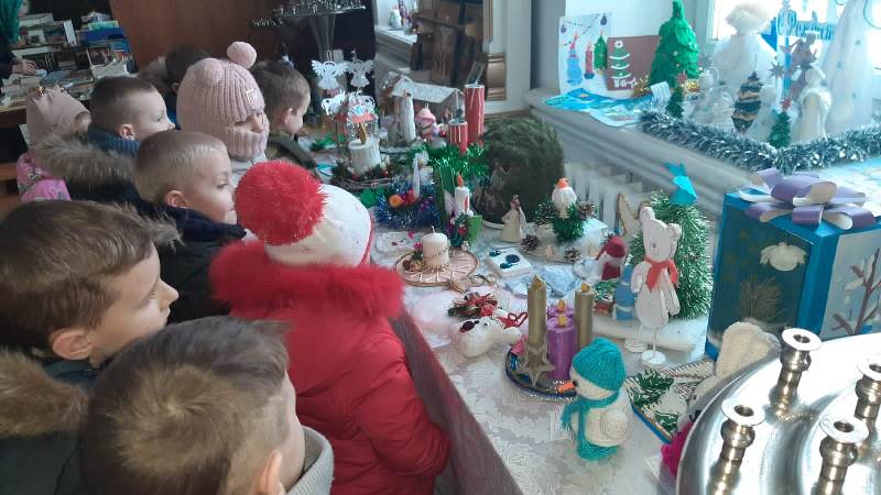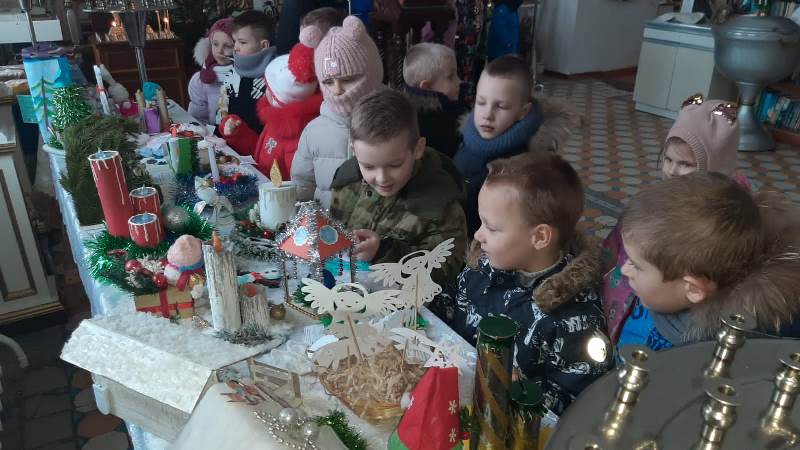 Дети подготовительных групп детского сада №10 посетили выставку как зрители и как авторы рождественских свечей. Дошкольники обратили внимание на Рождественский вертеп, изображенный сюжет, долго рассматривали его, слушали рассказ о рождении маленького Иисуса.