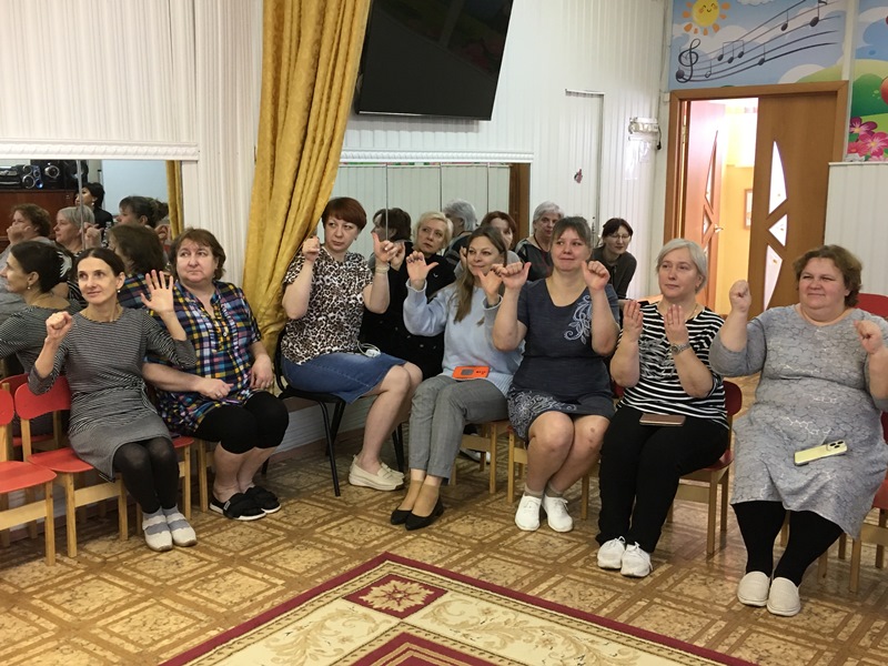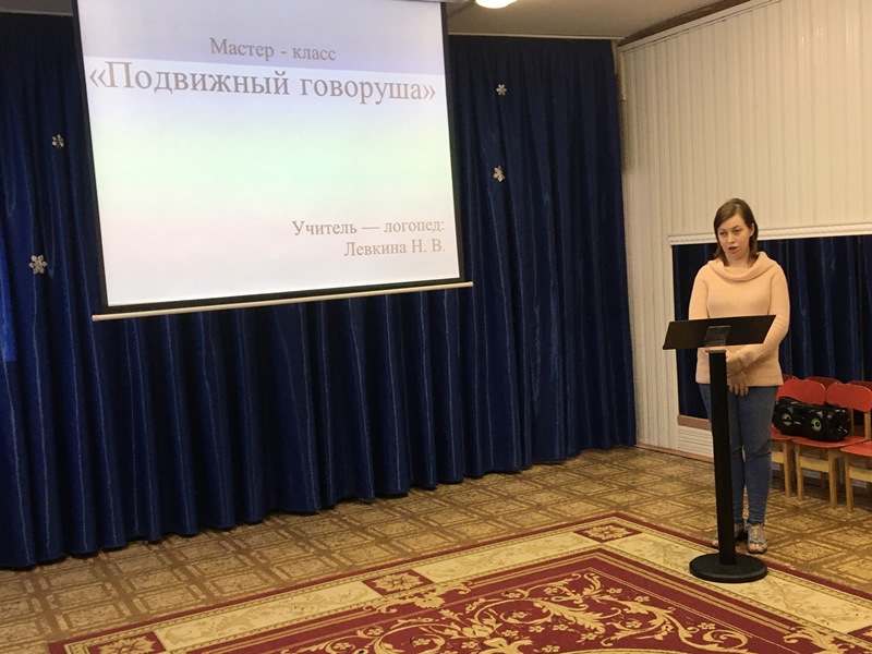 Педагоги детского сада приняли участие в мастер-классе учителя –логопеда Левкиной Натальи Владимировны на тему «Подвижный говоруша». Она рассказала о занятиях с детьми с использованием логоритмики, привлекая педагогов к логоритмическим упражнениям, слушанию музыки. Обозначила важность развития чистой и грамотной речи детей, необходимости привлечения родителей в помощь педагогам для коррекции речи.