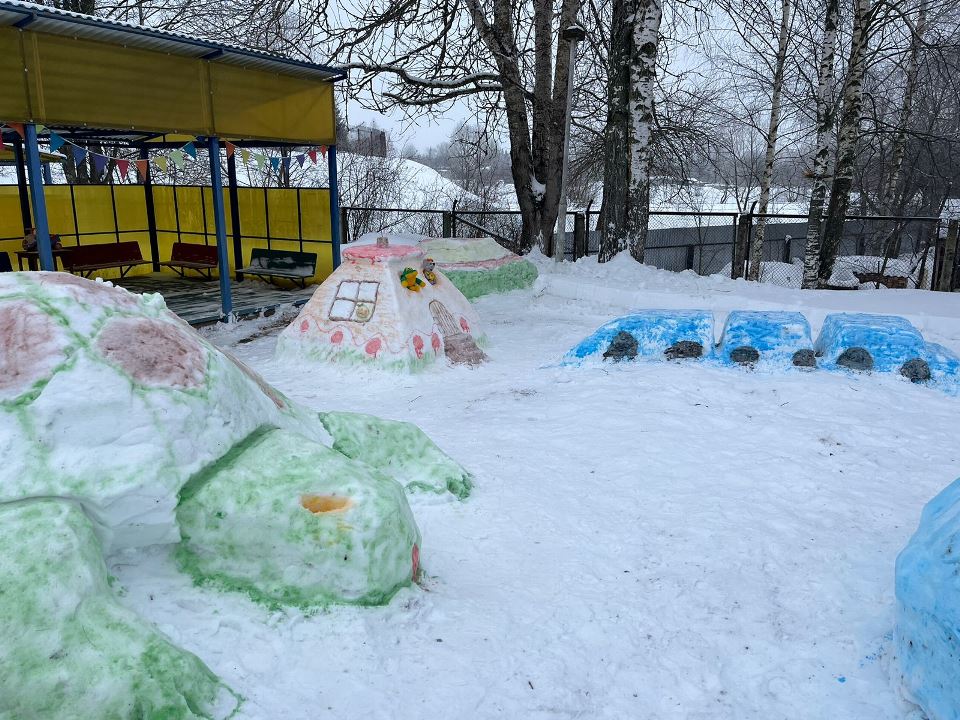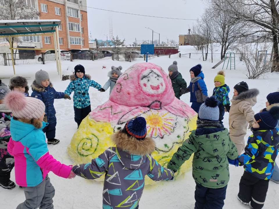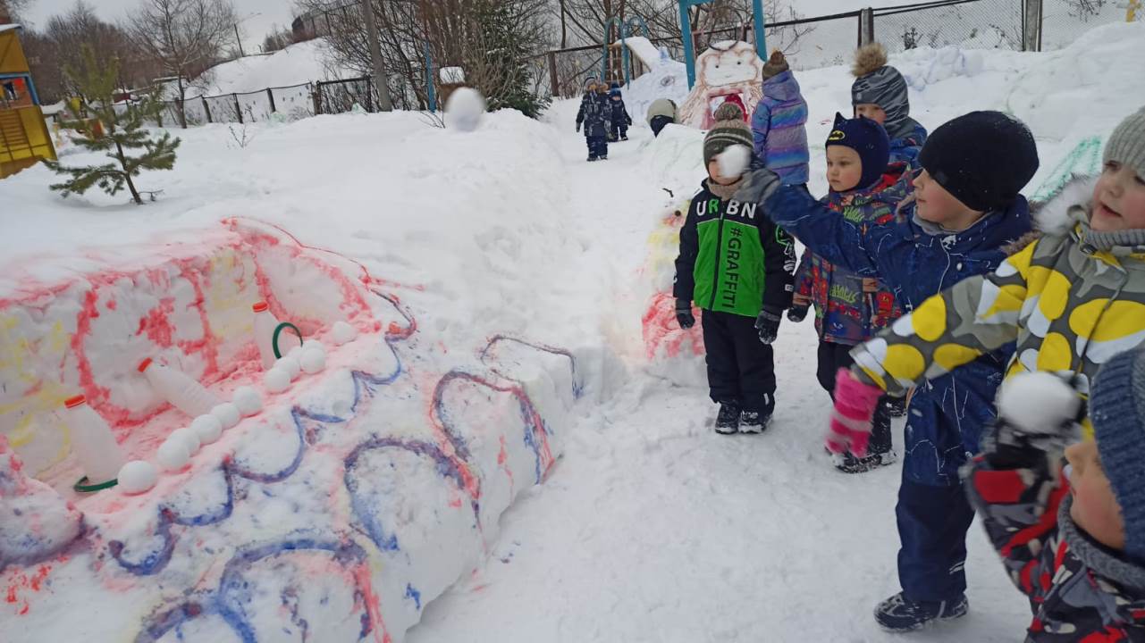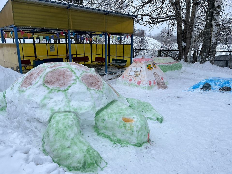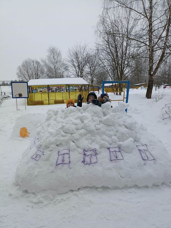 В нашем детском саду большое внимание уделяется оздоровительной работе, формам активного отдыха и пропаганде здорового образа жизни. Каждый год, как только набирается достаточно большое количество снега, мы сразу же начинаем использовать это природное явление с пользой для детей. Строим различные снежные постройки, спортивные сооружения.