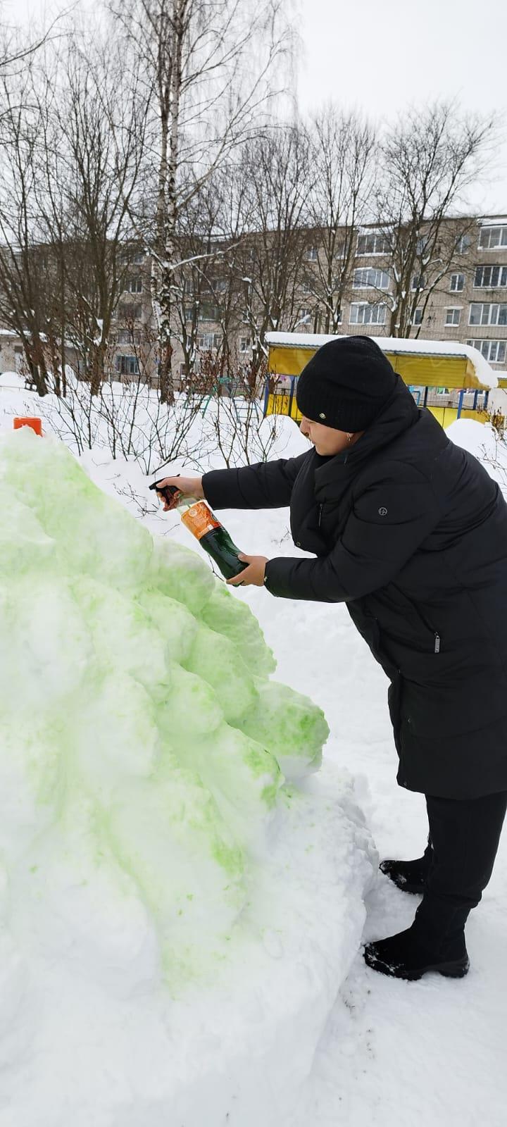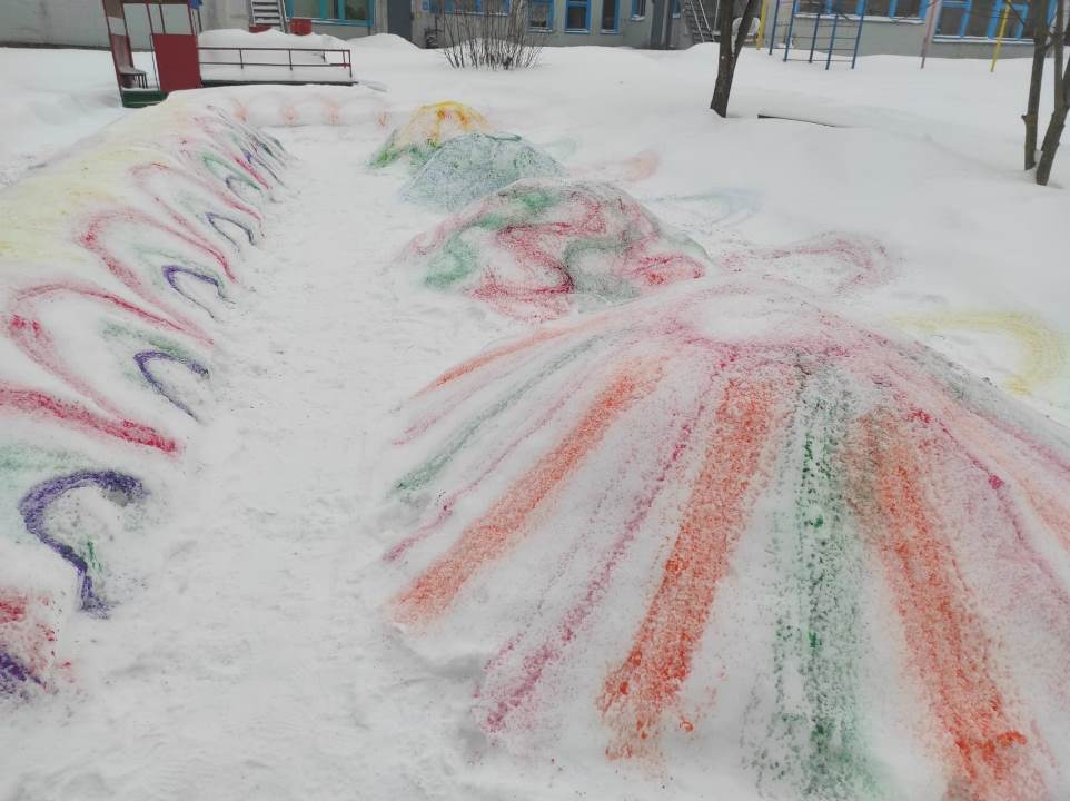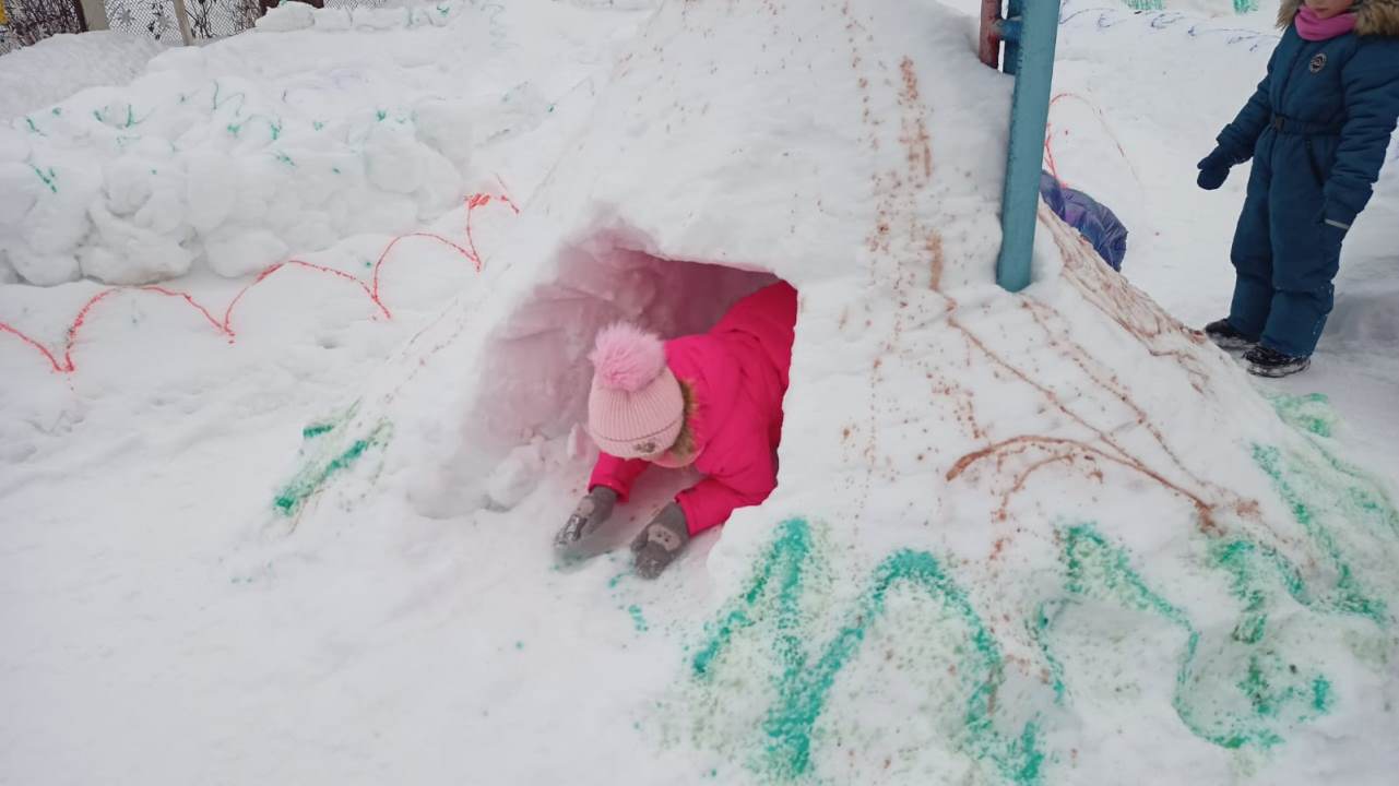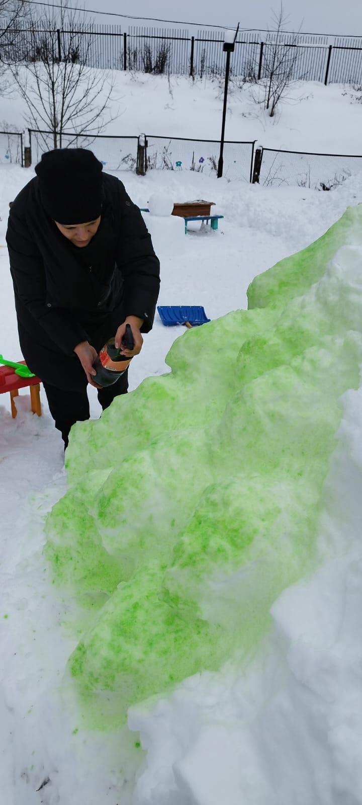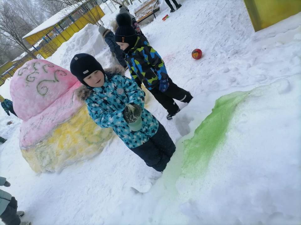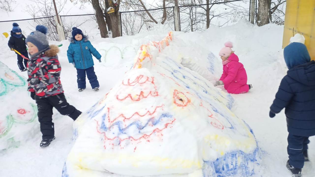 В рамках смотра построек, персонажей из снега, детям хочется поделиться своей сюжетной постройкой и посмотреть другие. Они гуляют по участкам детского сада и удивляются чудесам из снега и льда. При строительстве построек использовали технологии разрезания снега и художественное окрашивание. Все были очень результативны в работе, от разработки идеи, до ее окончательного воплощения. А как хорошо, ярко и позитивно смотрятся снежные шедевры на участках для прогулок. Дети решили, что все – волшебники!