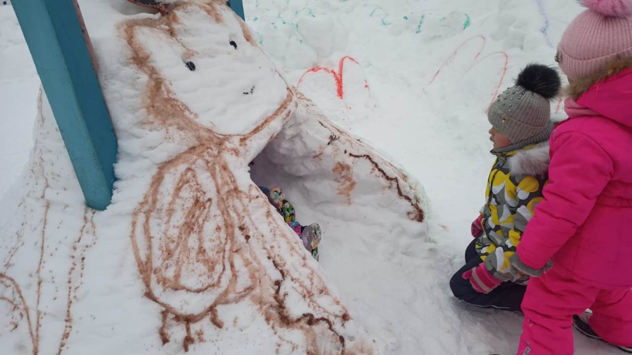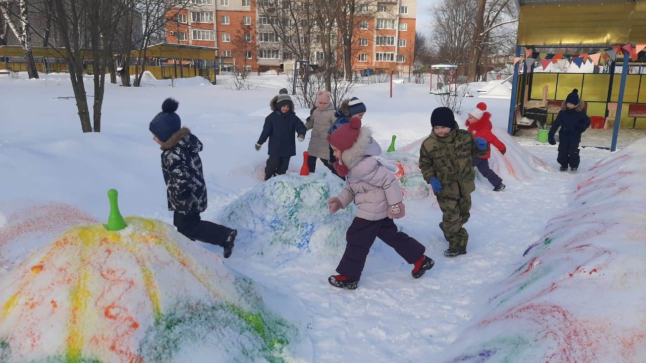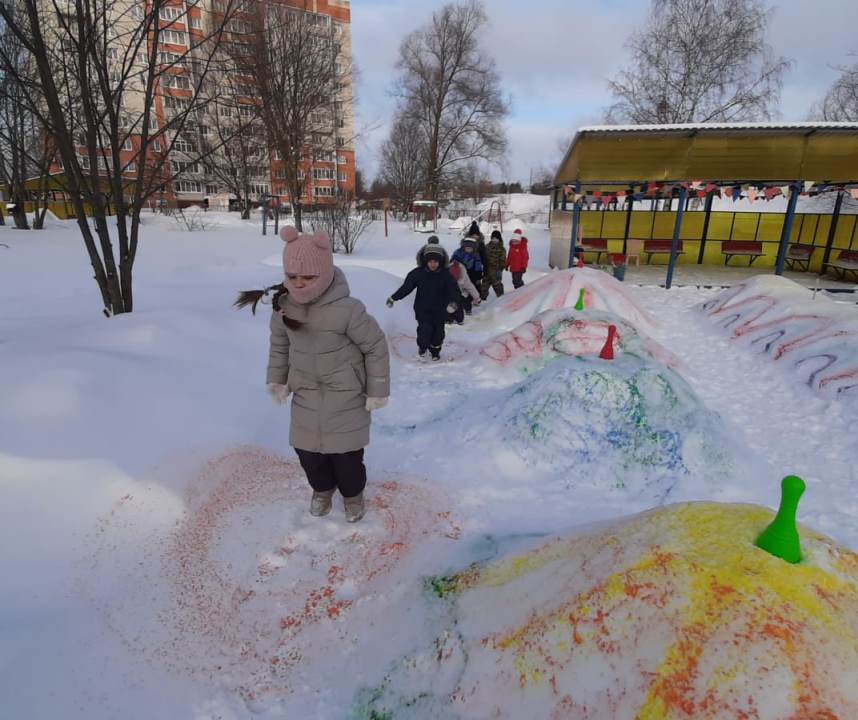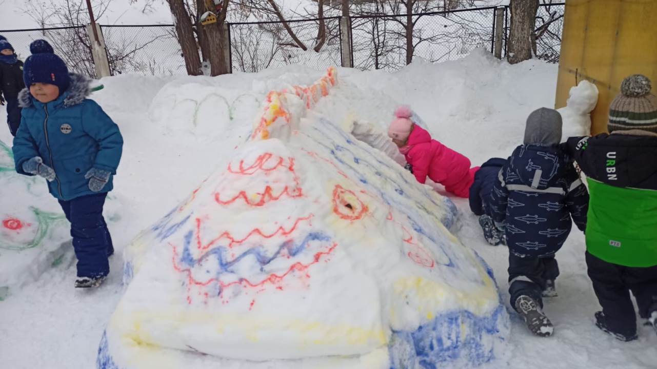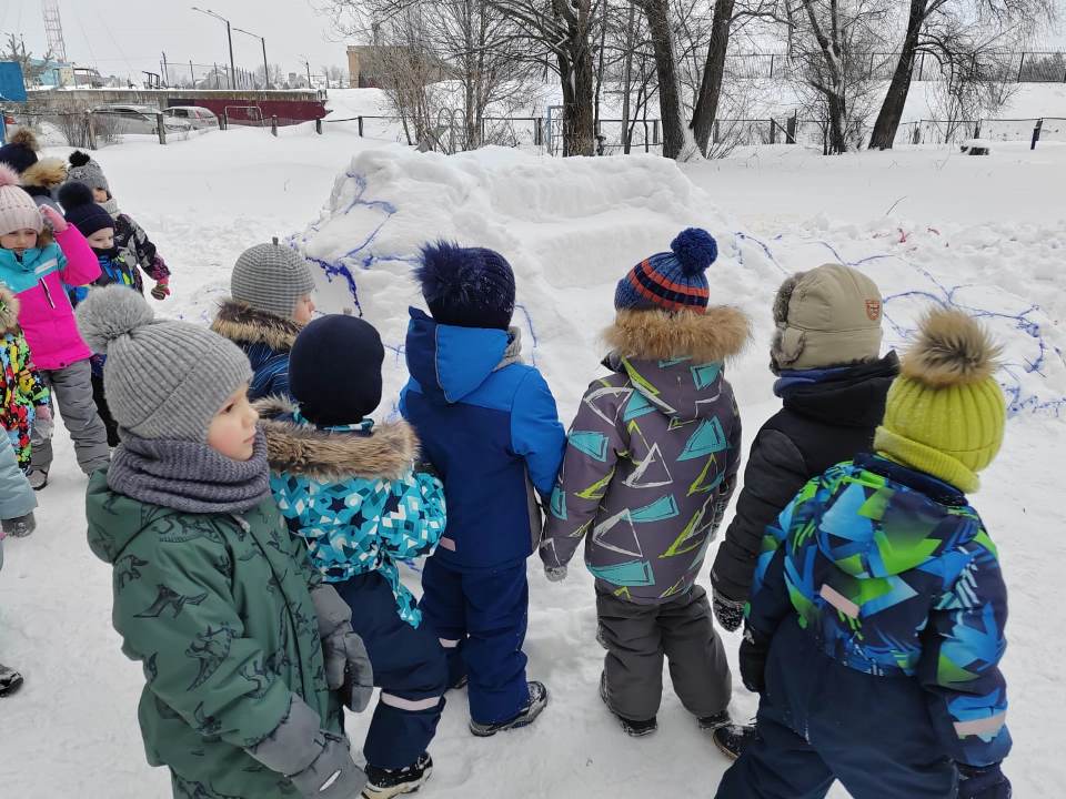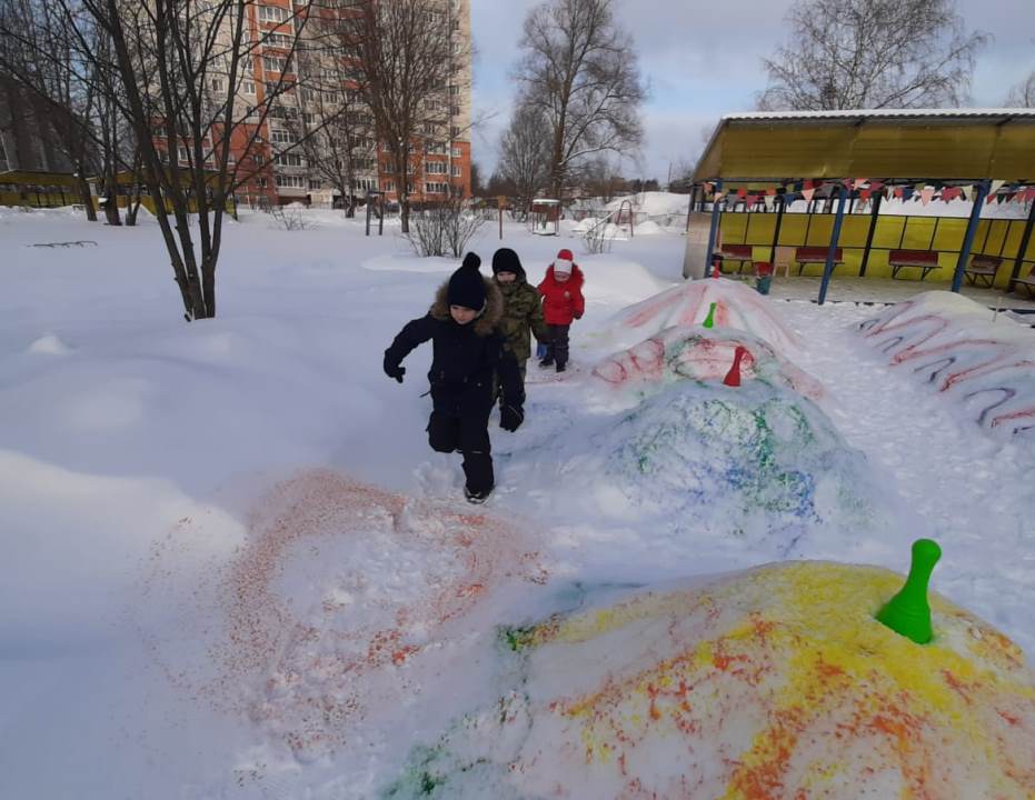 В рамках смотра построек, персонажей из снега, детям хочется поделиться своей сюжетной постройкой и посмотреть другие. Они гуляют по участкам детского сада и удивляются чудесам из снега и льда. При строительстве построек использовали технологии разрезания снега и художественное окрашивание. Все были очень результативны в работе, от разработки идеи, до ее окончательного воплощения. А как хорошо, ярко и позитивно смотрятся снежные шедевры на участках для прогулок. Дети решили, что все – волшебники!