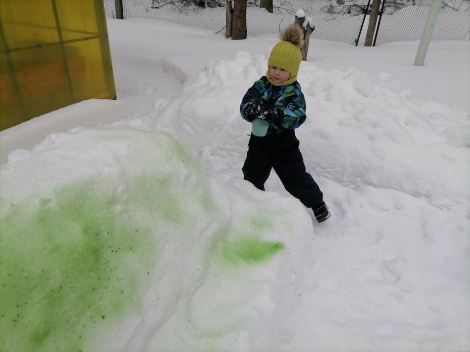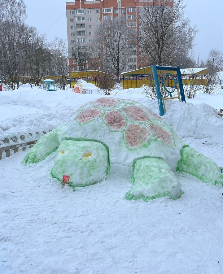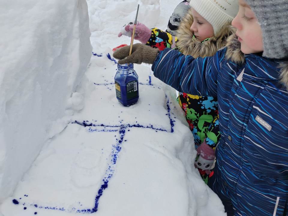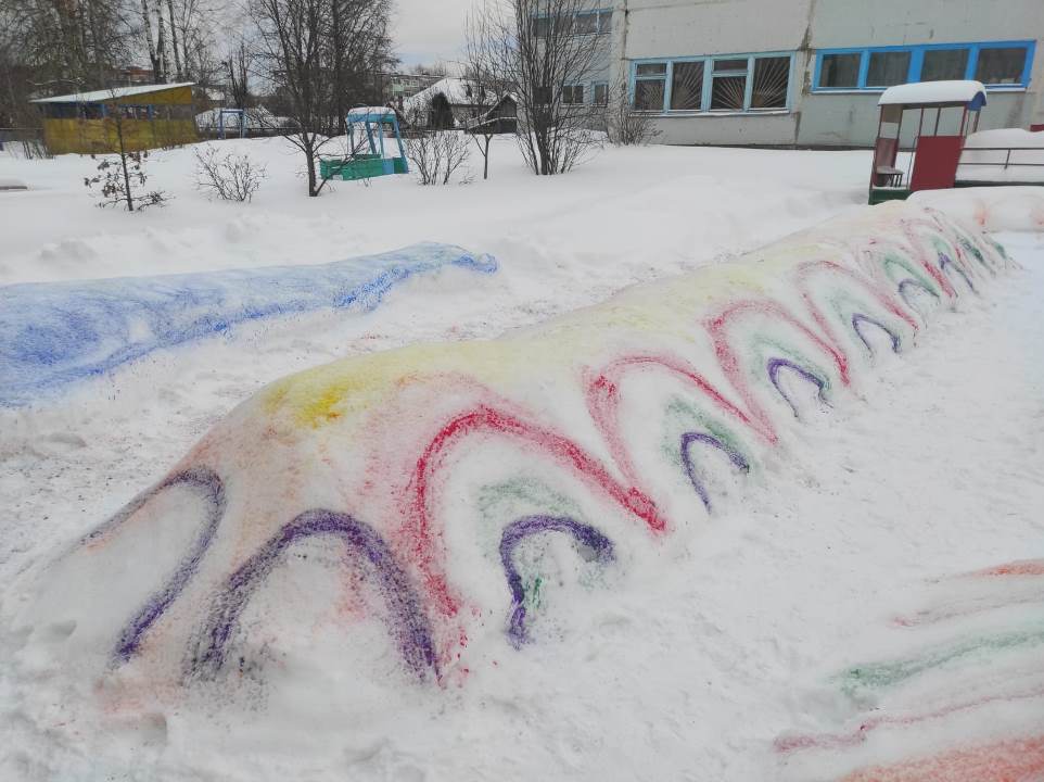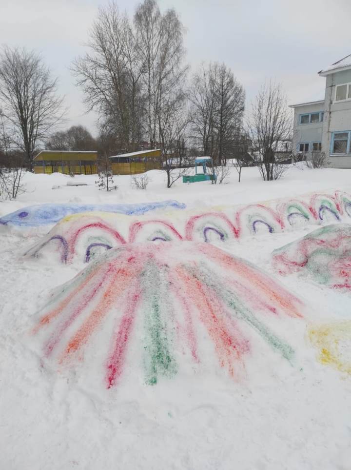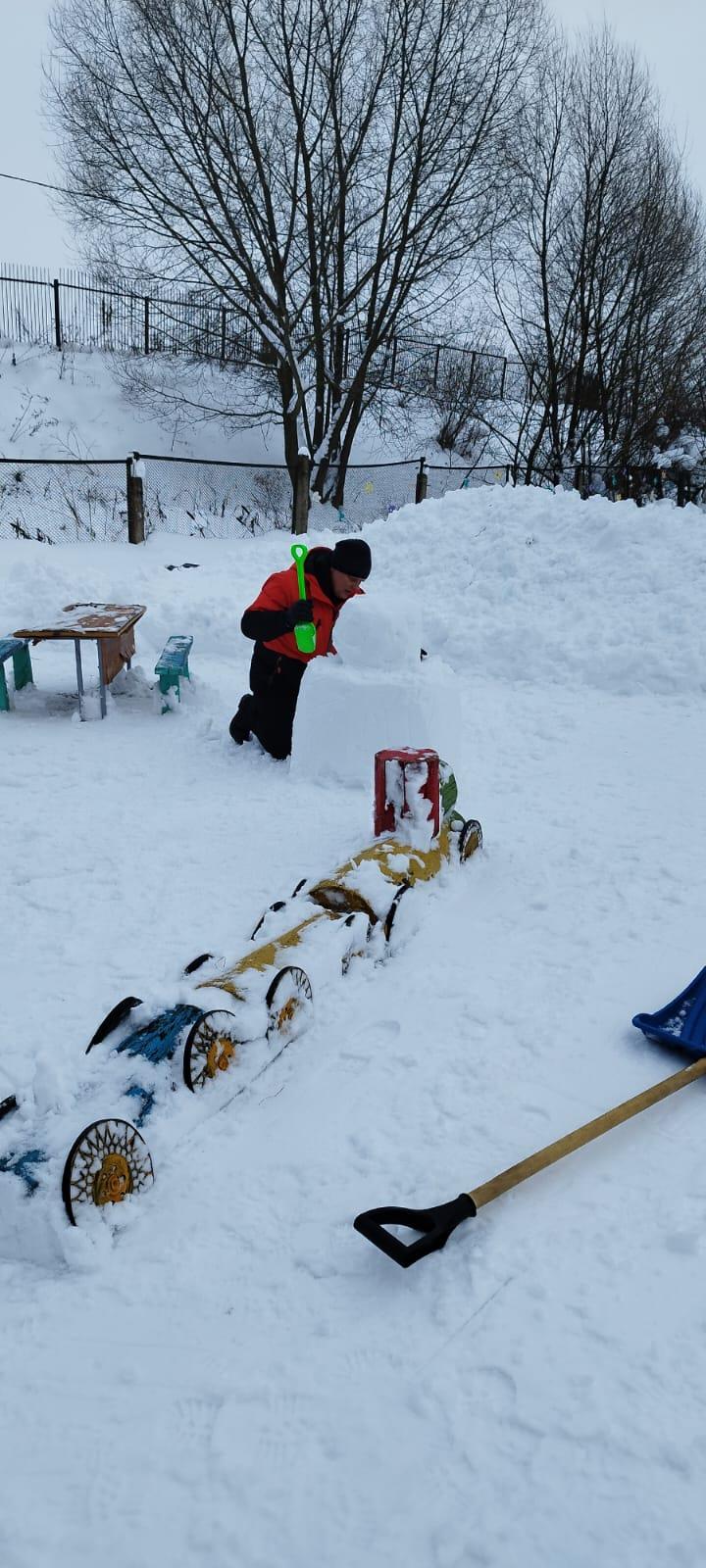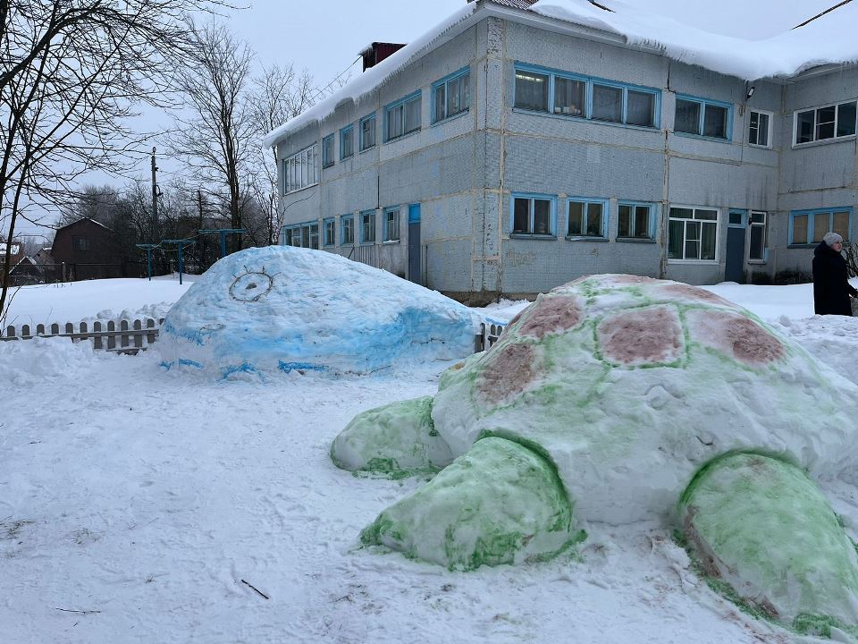 В рамках смотра построек, персонажей из снега, детям хочется поделиться своей сюжетной постройкой и посмотреть другие. Они гуляют по участкам детского сада и удивляются чудесам из снега и льда. При строительстве построек использовали технологии разрезания снега и художественное окрашивание. Все были очень результативны в работе, от разработки идеи, до ее окончательного воплощения. А как хорошо, ярко и позитивно смотрятся снежные шедевры на участках для прогулок. Дети решили, что все – волшебники!