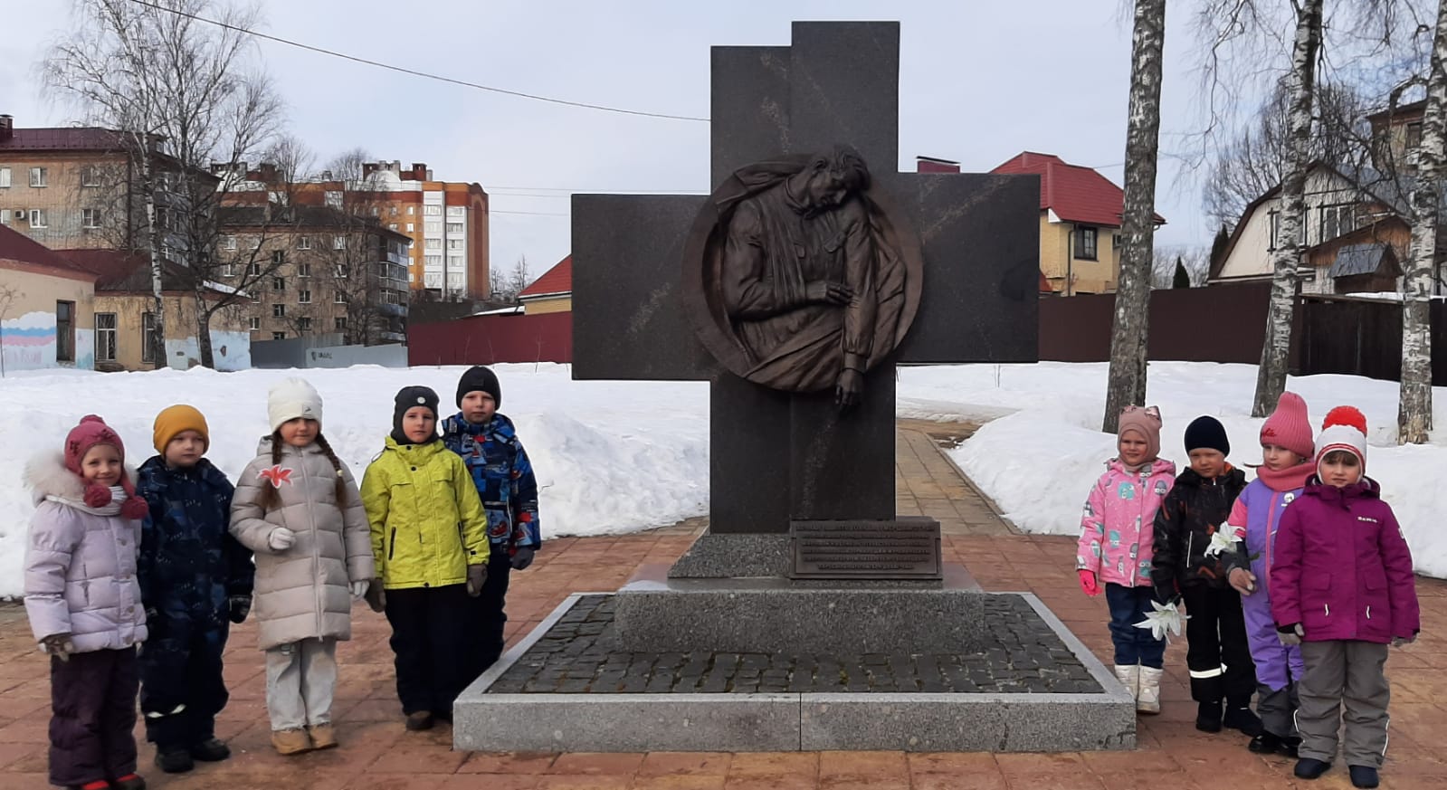 Дети подготовительных групп №9, №11 посетили памятник на братком военном захоронении. Цель посещения мемориала - сохранение исторической памяти о героическом прошлом нашего родного города.