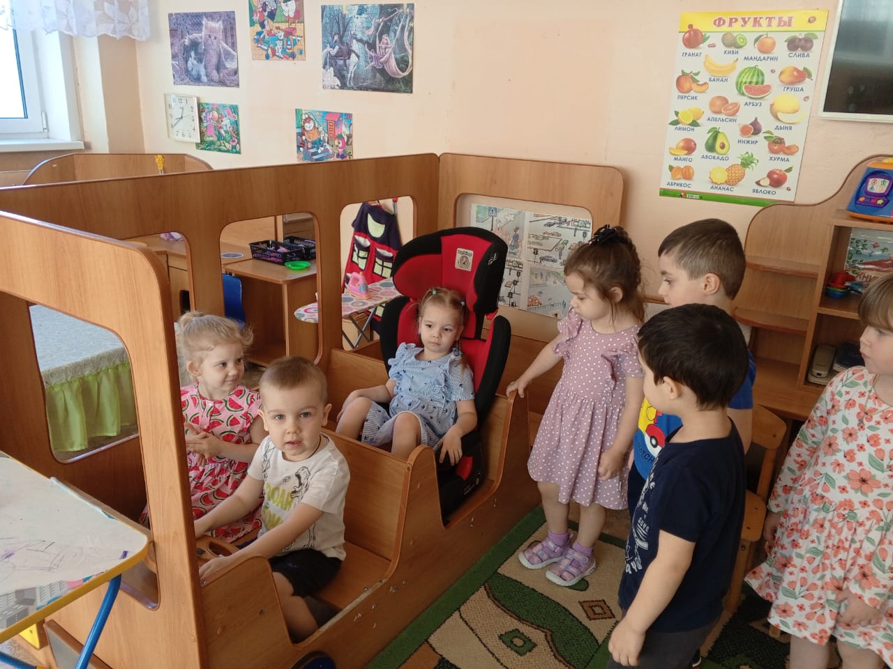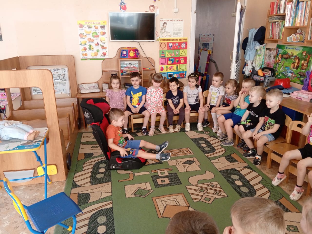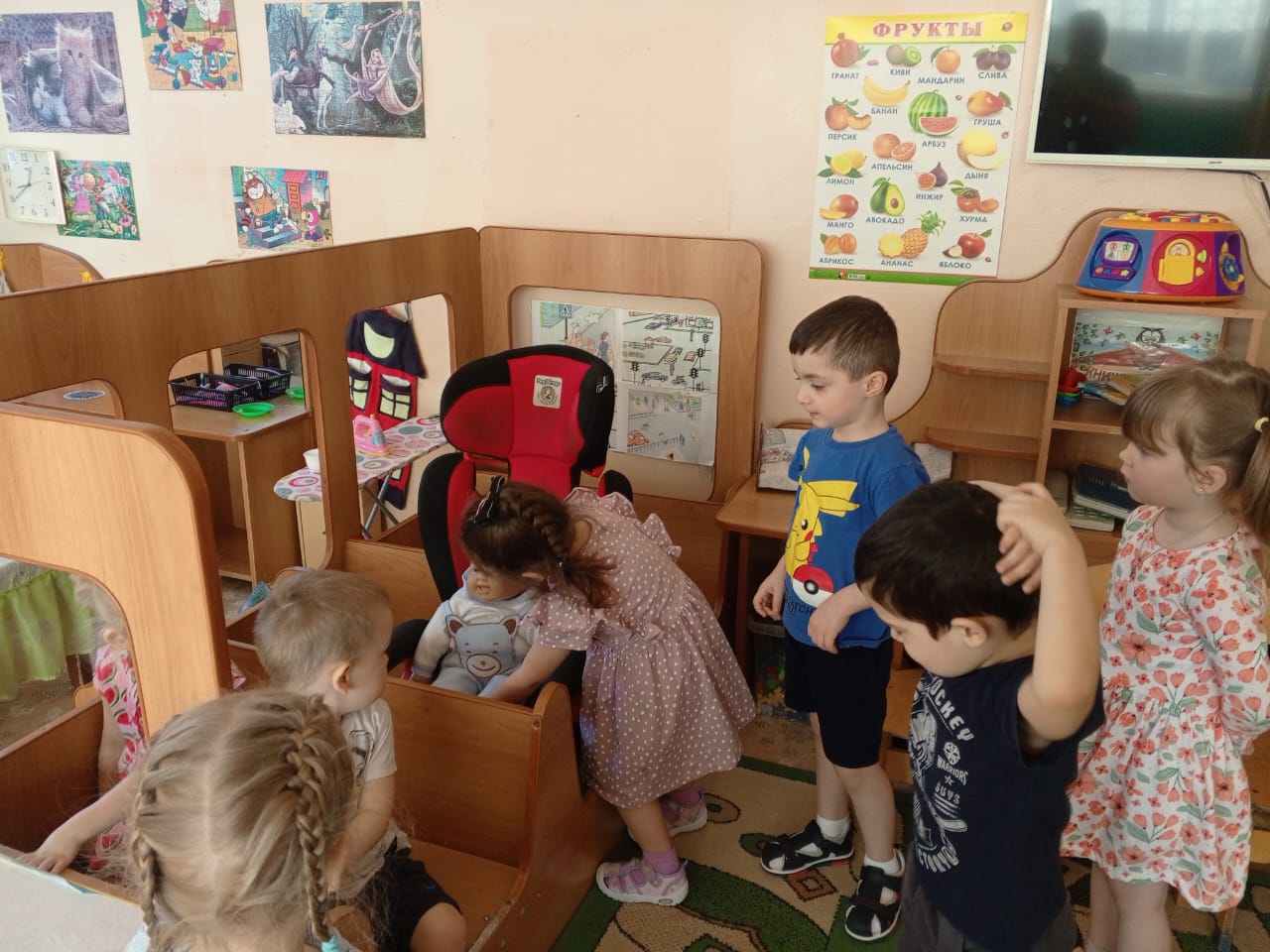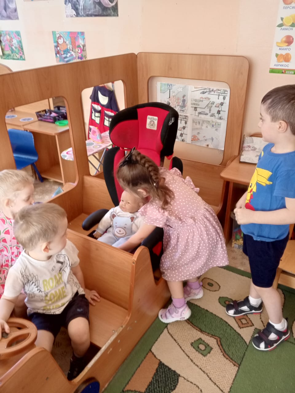 Воспитатель Наталья Владимировна Дубоносова организовала с детьми познавательные сюжетные игры. Малыши обыгрывали свои поездки с папой и мамой в детском кресле, придумывали игры с куклами. Показывали светоотражающие аппликации и нашивки на своих курточках и шапочках