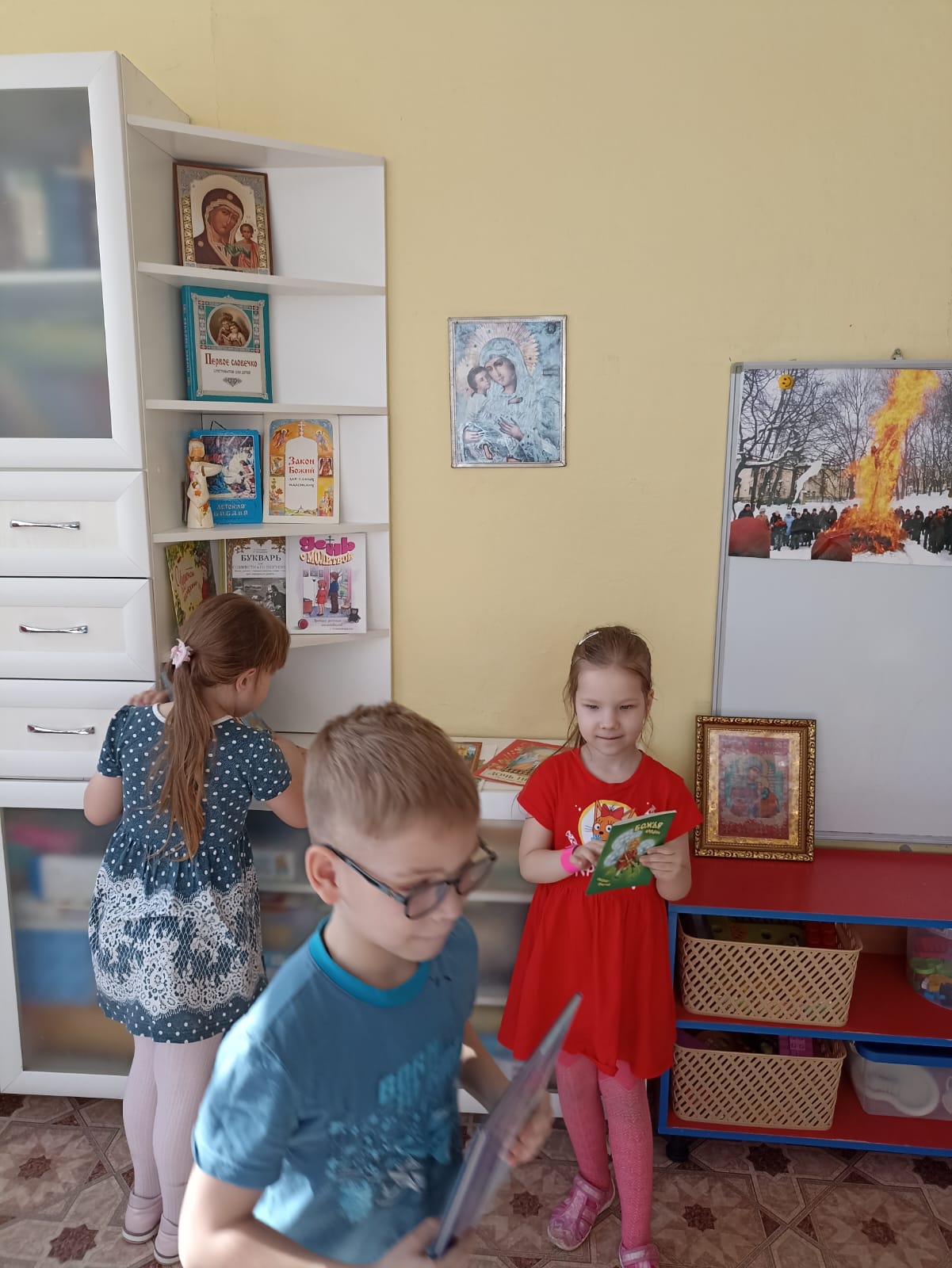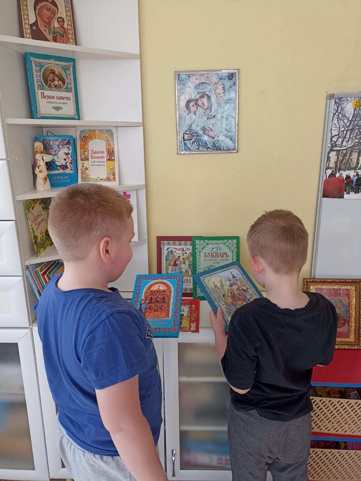 Дети выбирали наиболее полюбившиеся книги, рисовали и раскрашивали иллюстрации к православному Букварю.