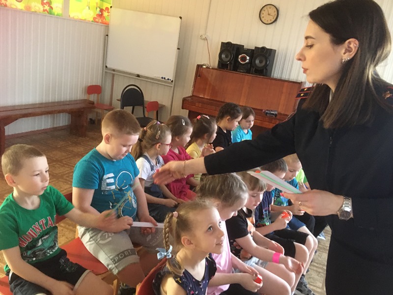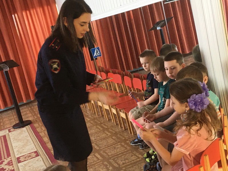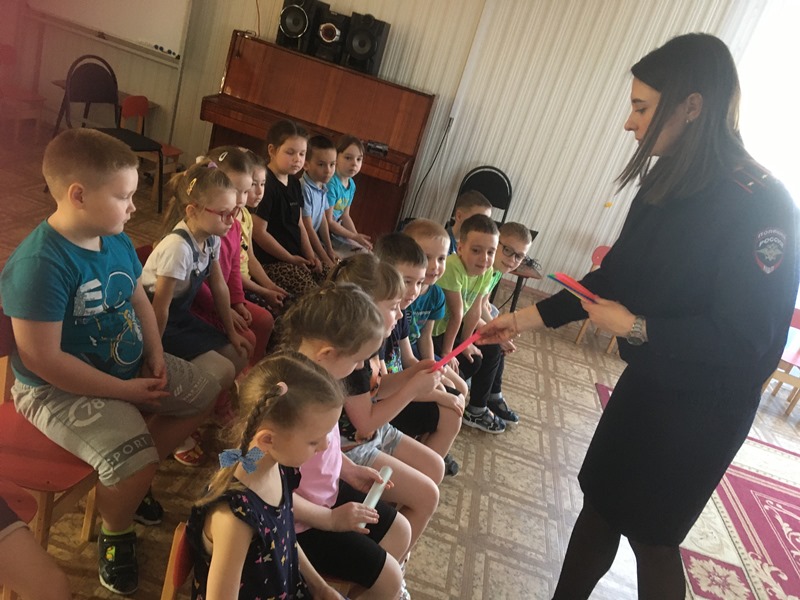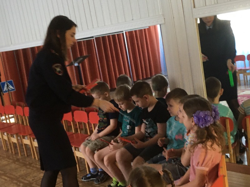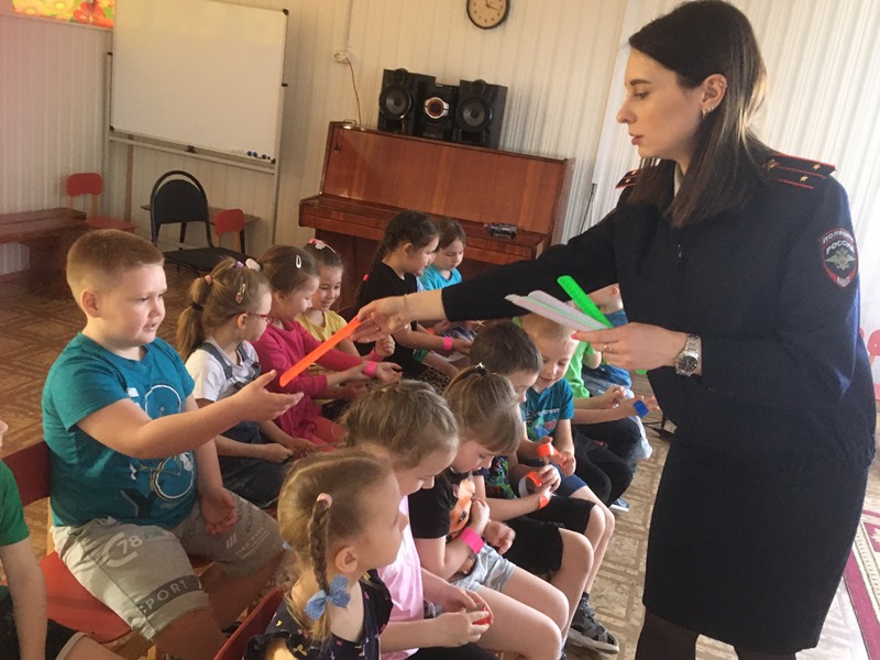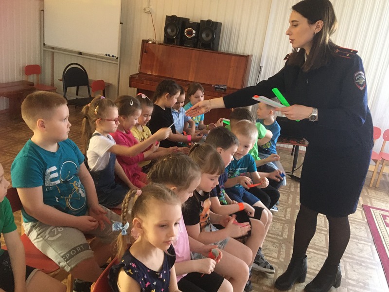 инспектором, мультипликационных заданиях. В итоге встречи дети получили световозвращающие браслеты и рассказали об их применении.