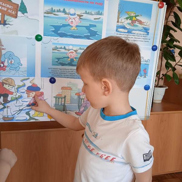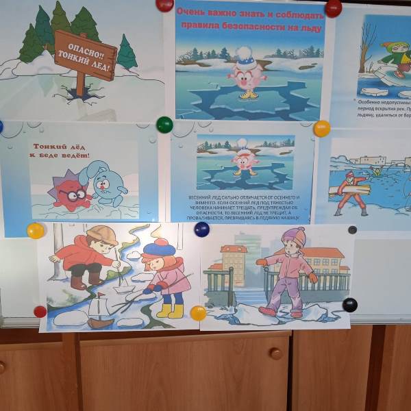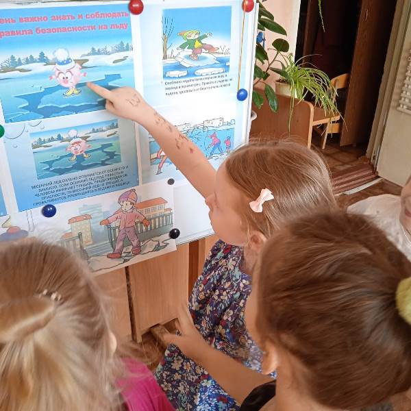 В средней группе 10 состоялось занятие по теме "Тонкий лёд". Воспитатели объяснили детям, как опасен лёд весной, что он сильно отличается от зимнего льда. Изучали с детьми правила безопасности вблизи водоемов. С родителями также была проведена беседа на данные темы.