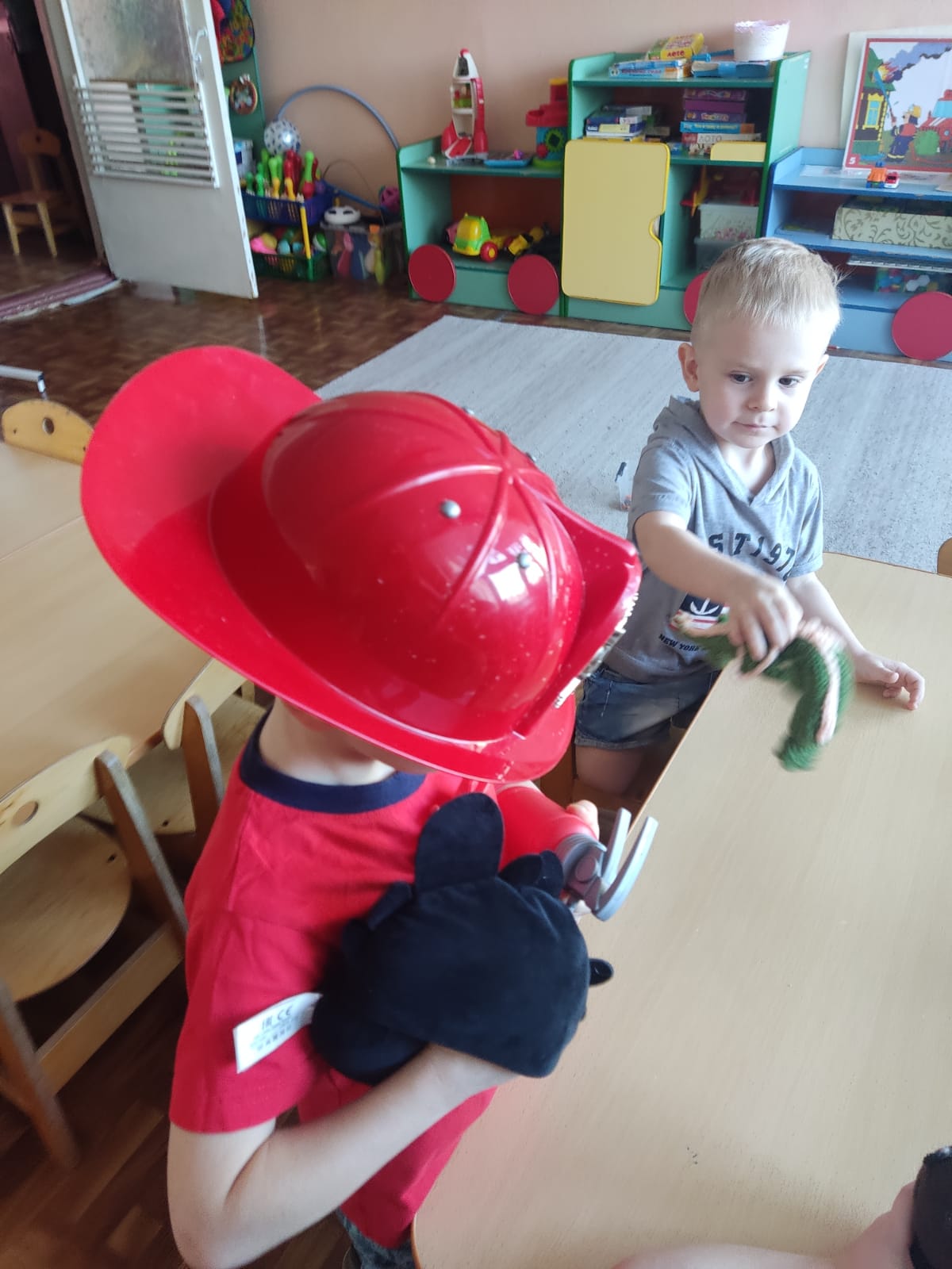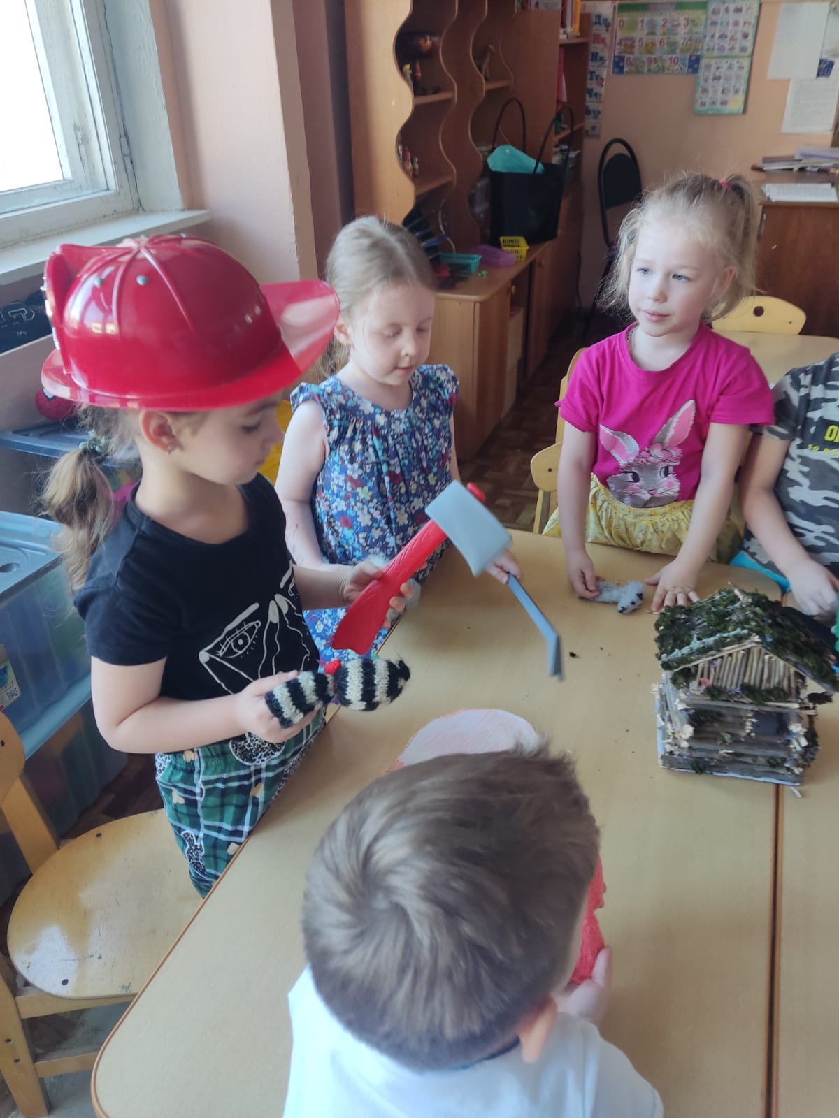 В средней группе №10 ребята участвовали в спектакле "Змей Горыныч и Теремок". Это новое звучание привычных сказок, объединенных общей проблемой. Жители Теремка учились тушить пожар, который устроил прилетевший Змей Горыныч. Они запомнили номер, по которому нужно звонить пожарным, а также помогали им в тушении пожара.