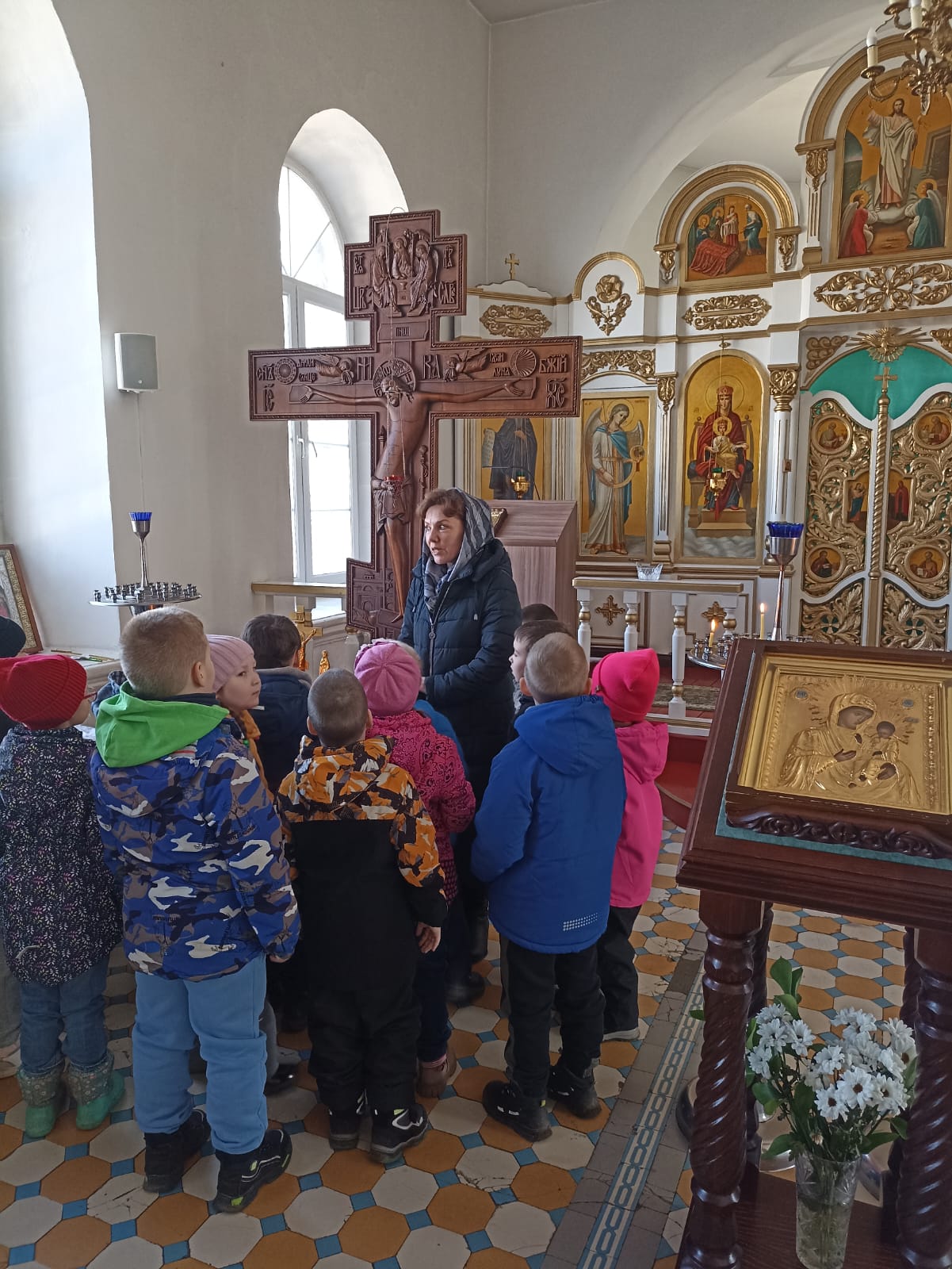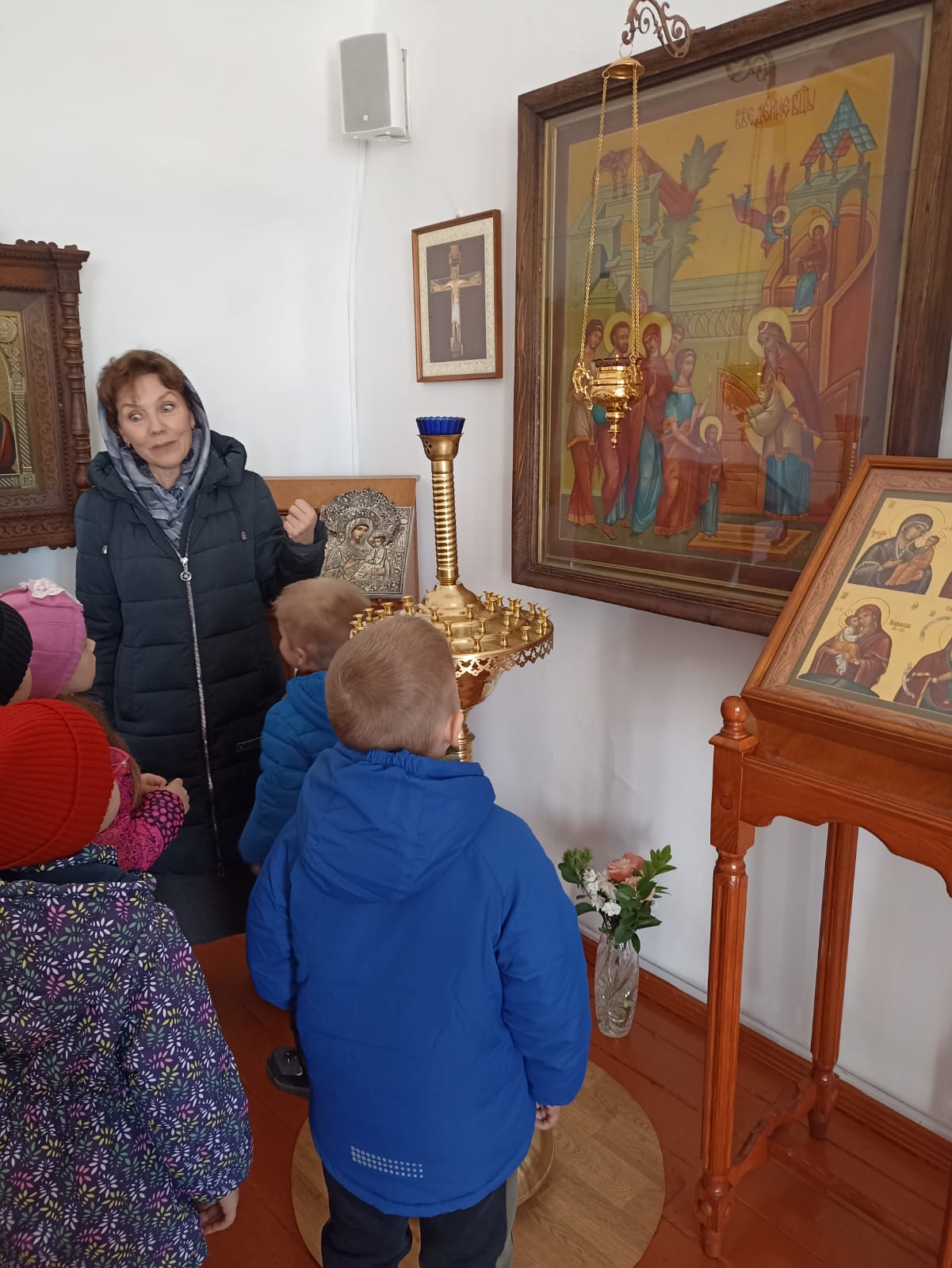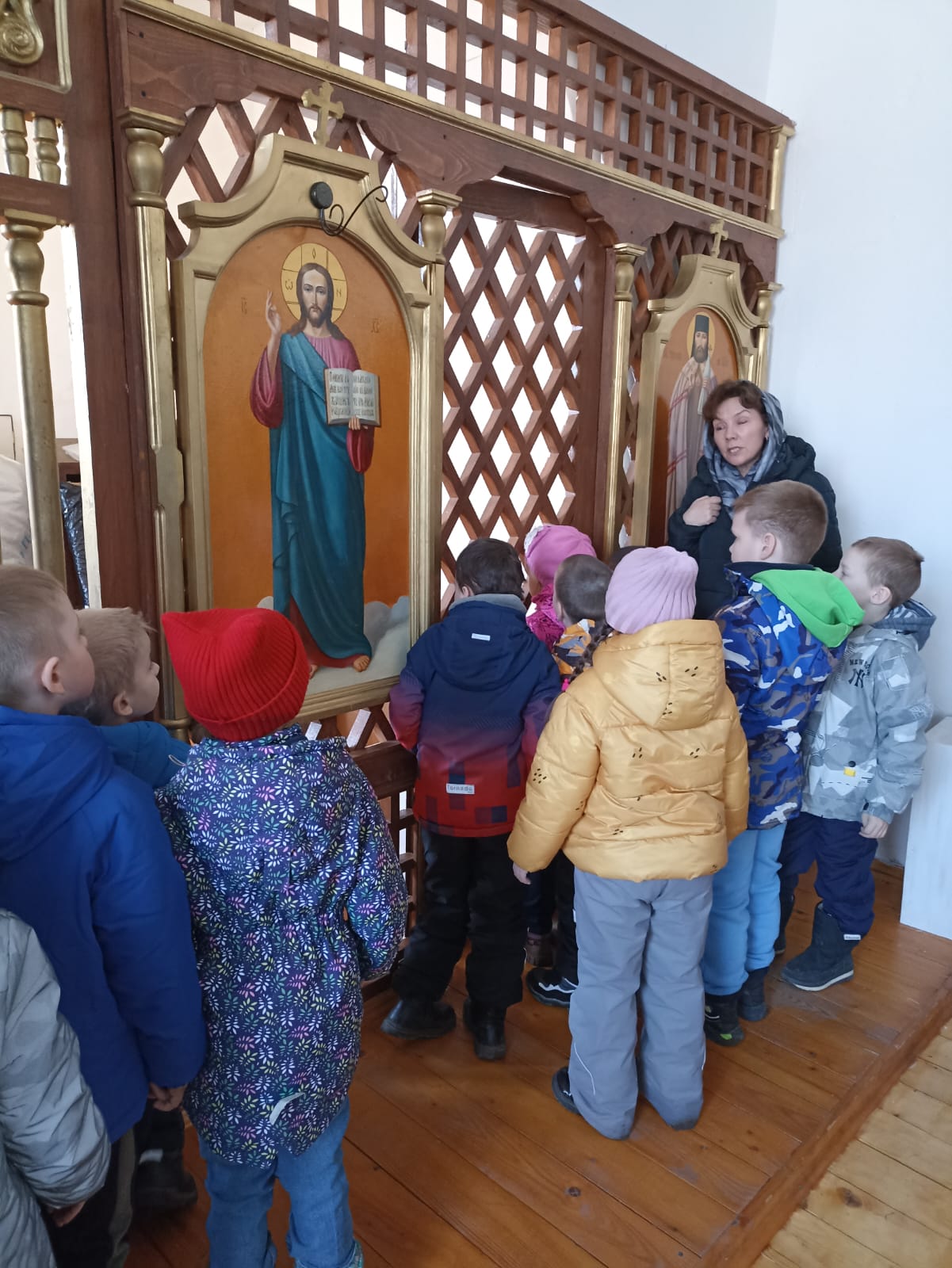 Воспитанники подготовительной группы №2 участвовали в экскурсии в церковь Введения во храм Пресвятой Богородицы, которую провела директор воскресной школы Милюкова Ирина Евгеньевна в сопровождении воспитателей Лисиенковой Галины Ивановны, Чупиной Валентины Вячеславовны, музыкального руководителя Григорьевой Елены Анатольевны. Ирина Евгеньевна в доступной форме рассказала дошкольникам о православном храме, особенностях его архитектуры. Дети увидели устройство храма внутри, рассматривали иконы, ставили свечи. Вспоминали православные праздники, слушали рассказы о святых, о милосердии, о других христианских заповедях.
