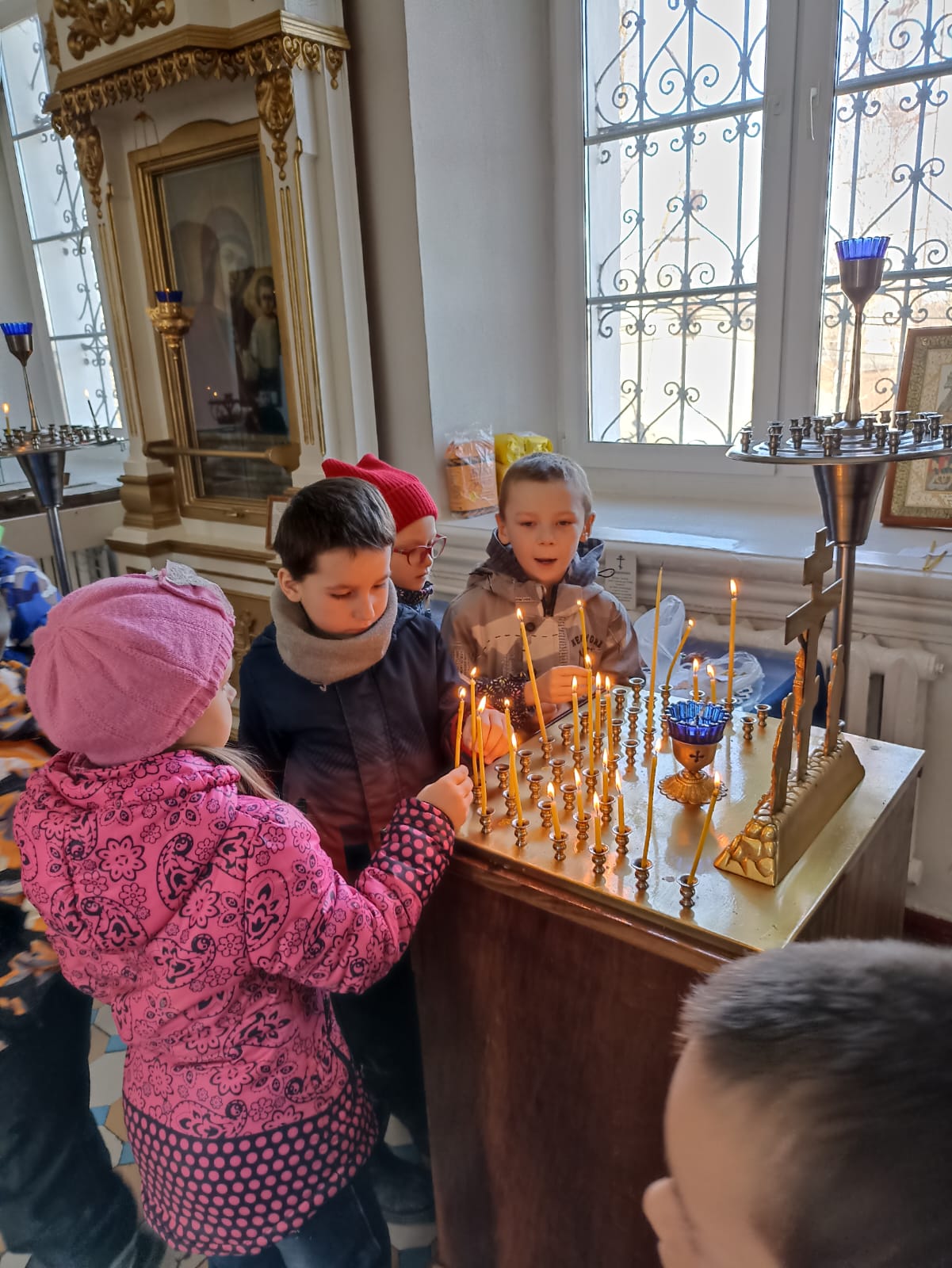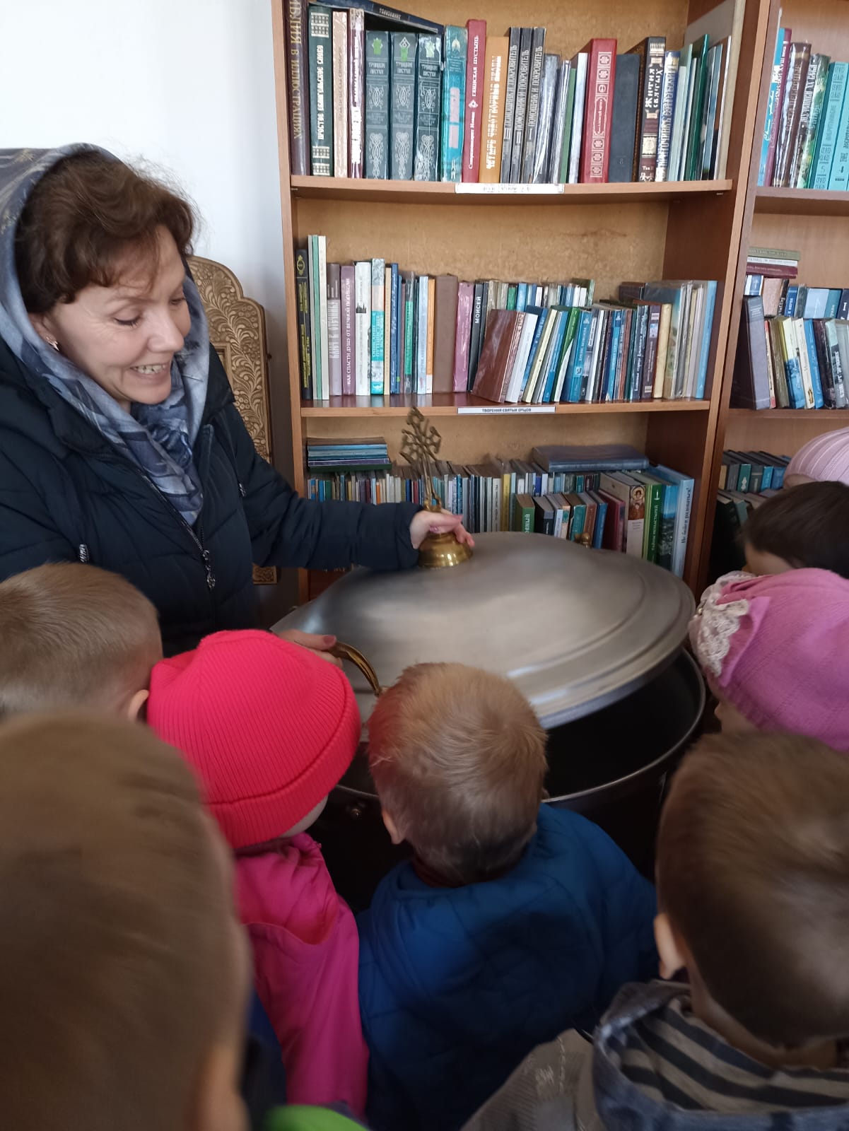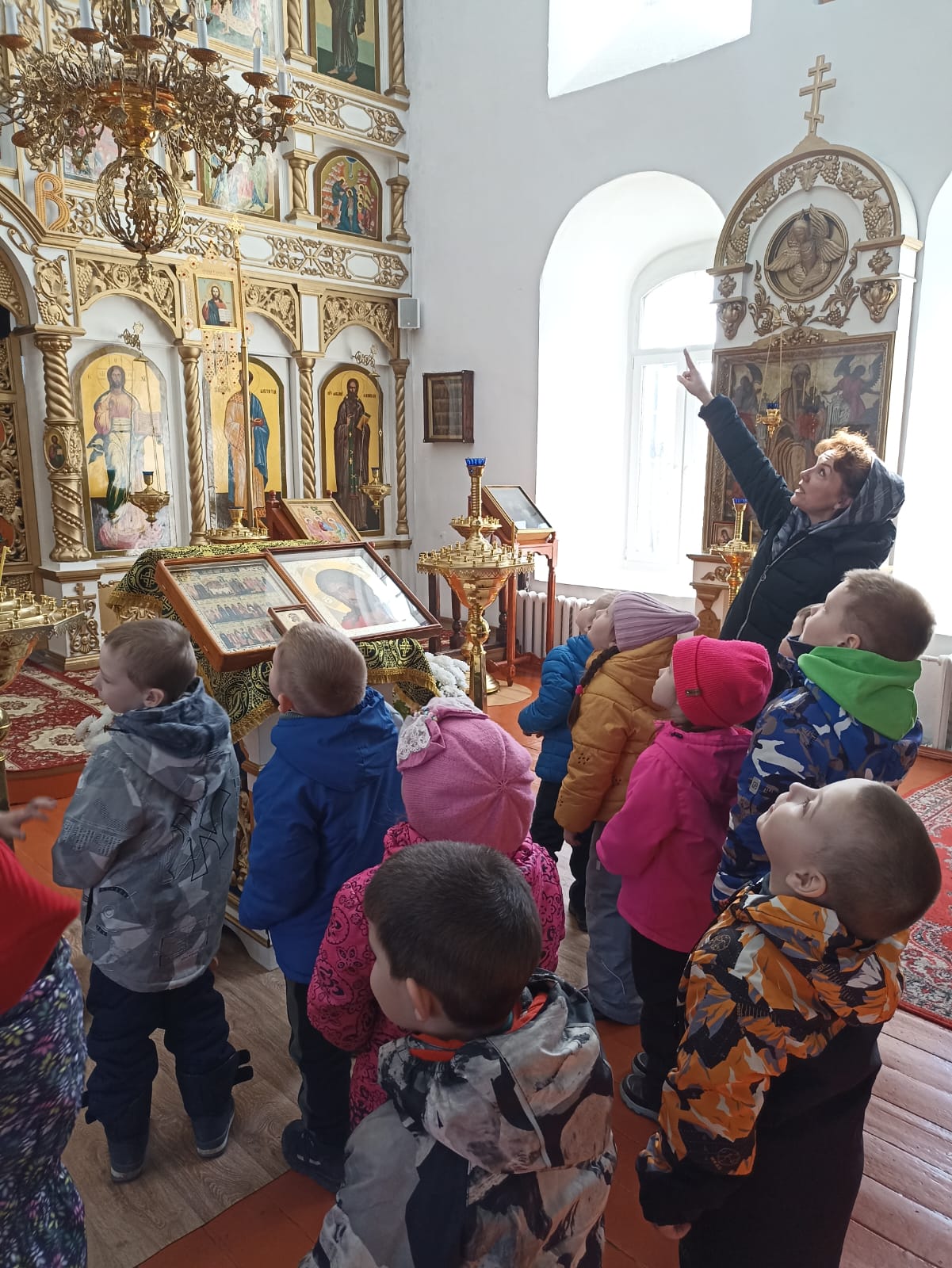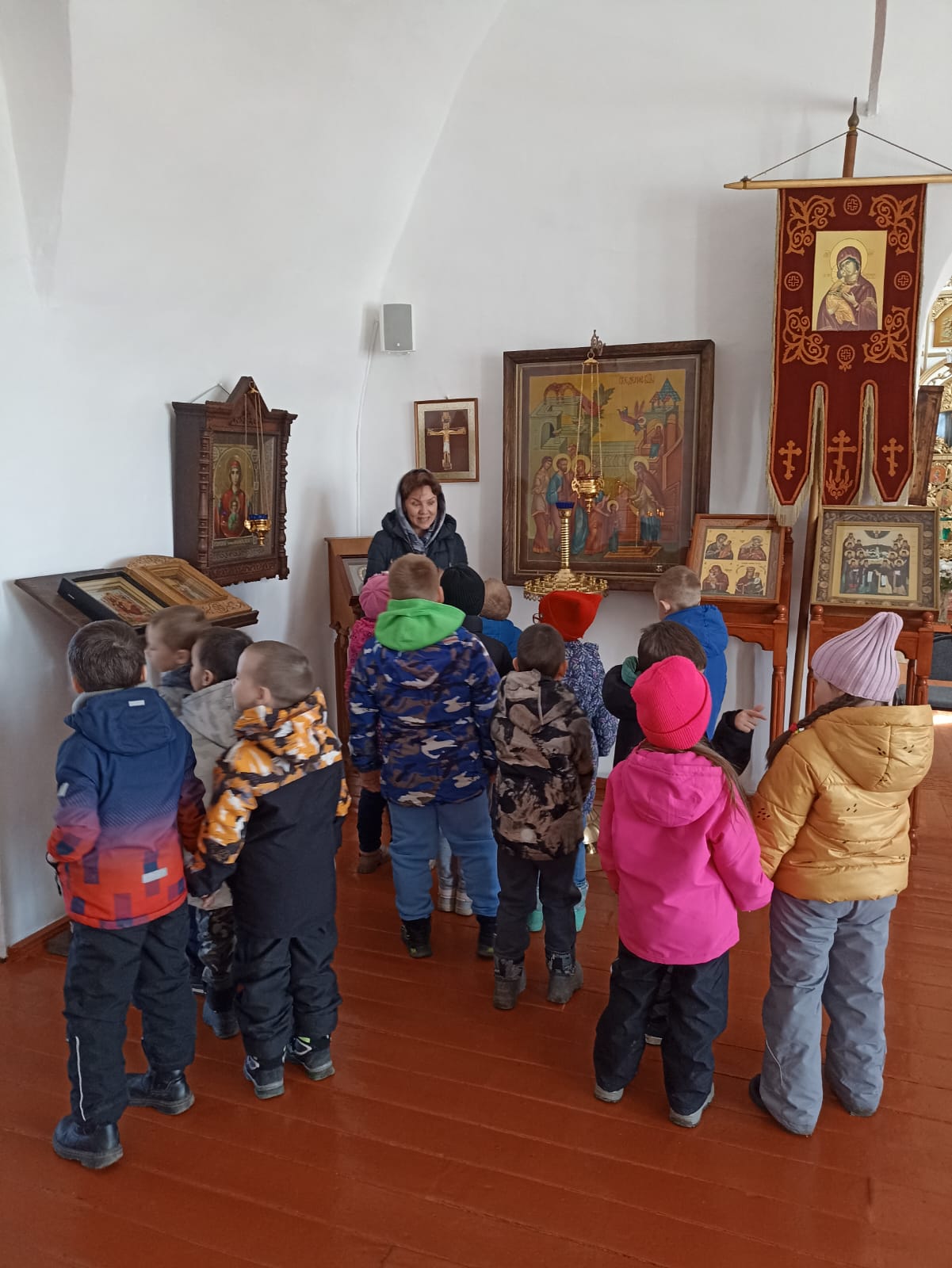 Воспитанники подготовительной группы №2 участвовали в экскурсии в церковь Введения во храм Пресвятой Богородицы, которую провела директор воскресной школы Милюкова Ирина Евгеньевна в сопровождении воспитателей Лисиенковой Галины Ивановны, Чупиной Валентины Вячеславовны, музыкального руководителя Григорьевой Елены Анатольевны. Ирина Евгеньевна в доступной форме рассказала дошкольникам о православном храме, особенностях его архитектуры. Дети увидели устройство храма внутри, рассматривали иконы, ставили свечи. Вспоминали православные праздники, слушали рассказы о святых, о милосердии, о других христианских заповедях.