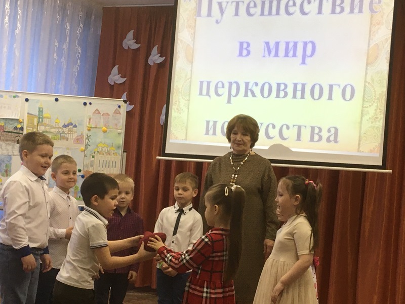 В итоге занятия гости получили от детей подарки – храмы, изготовленные из бумаги в технике оригами. Священник Олег Переверзев выразил благодарность педагогическому коллективу детского сада и подарил книгу «Русские иконы».