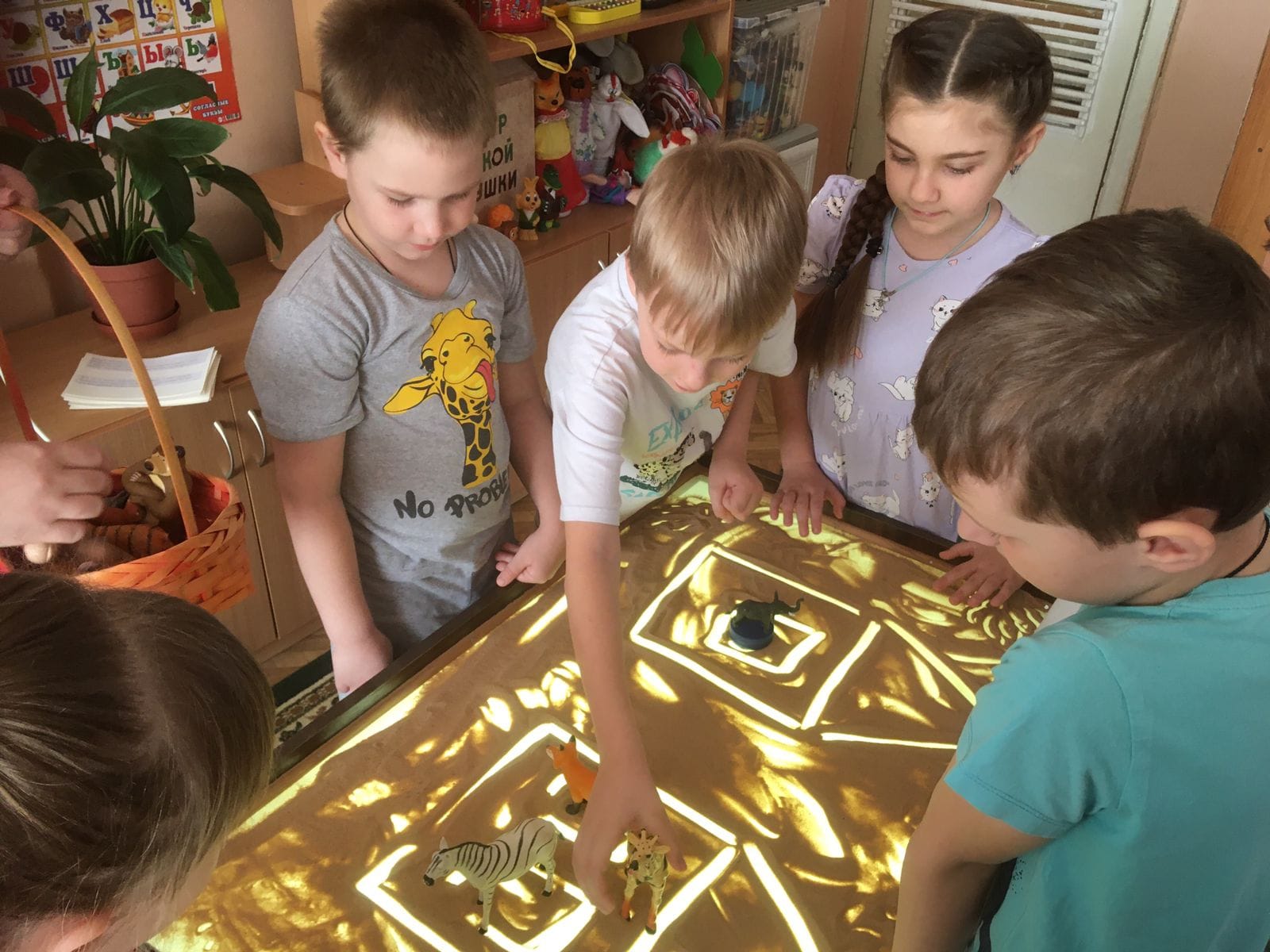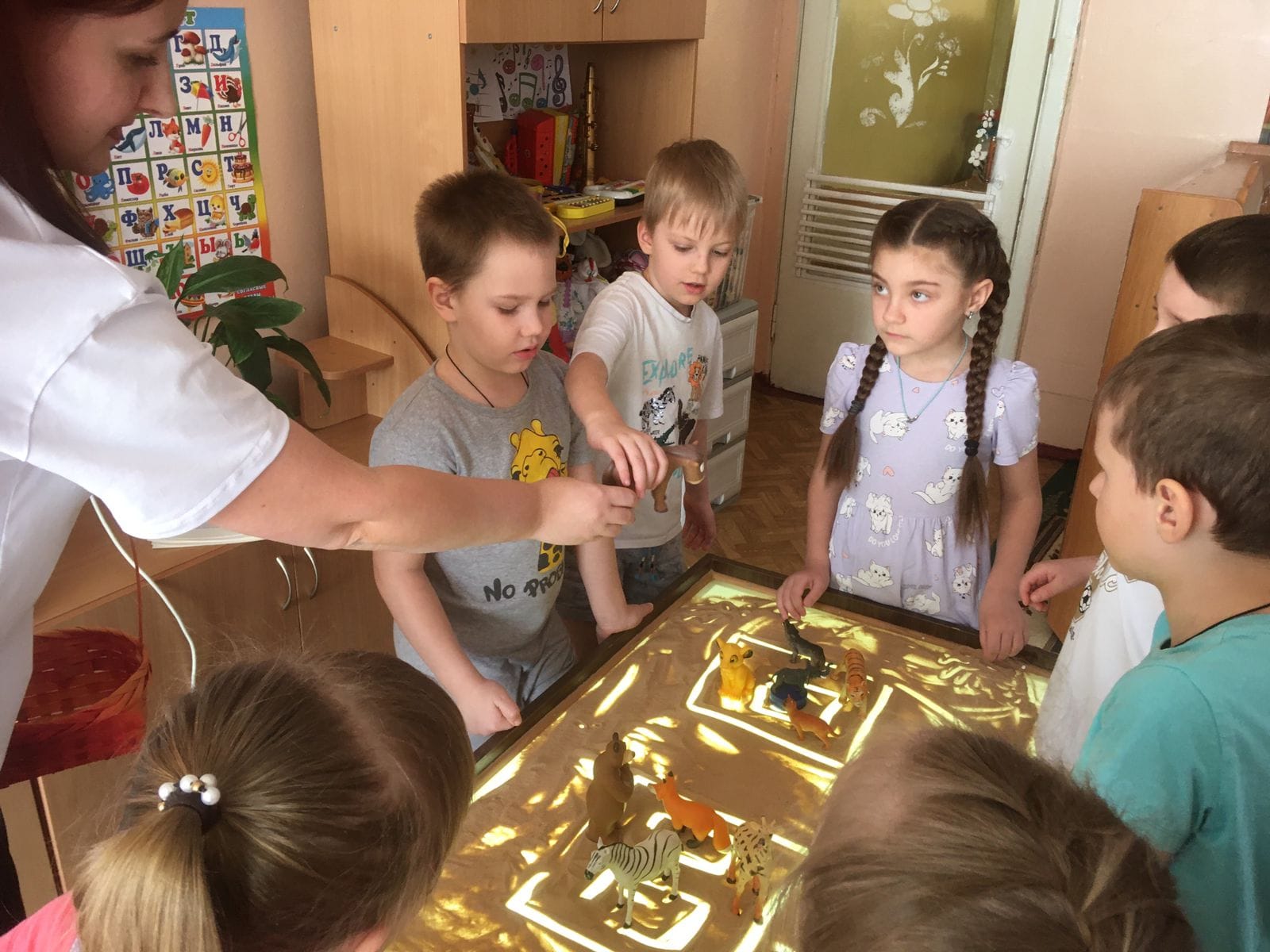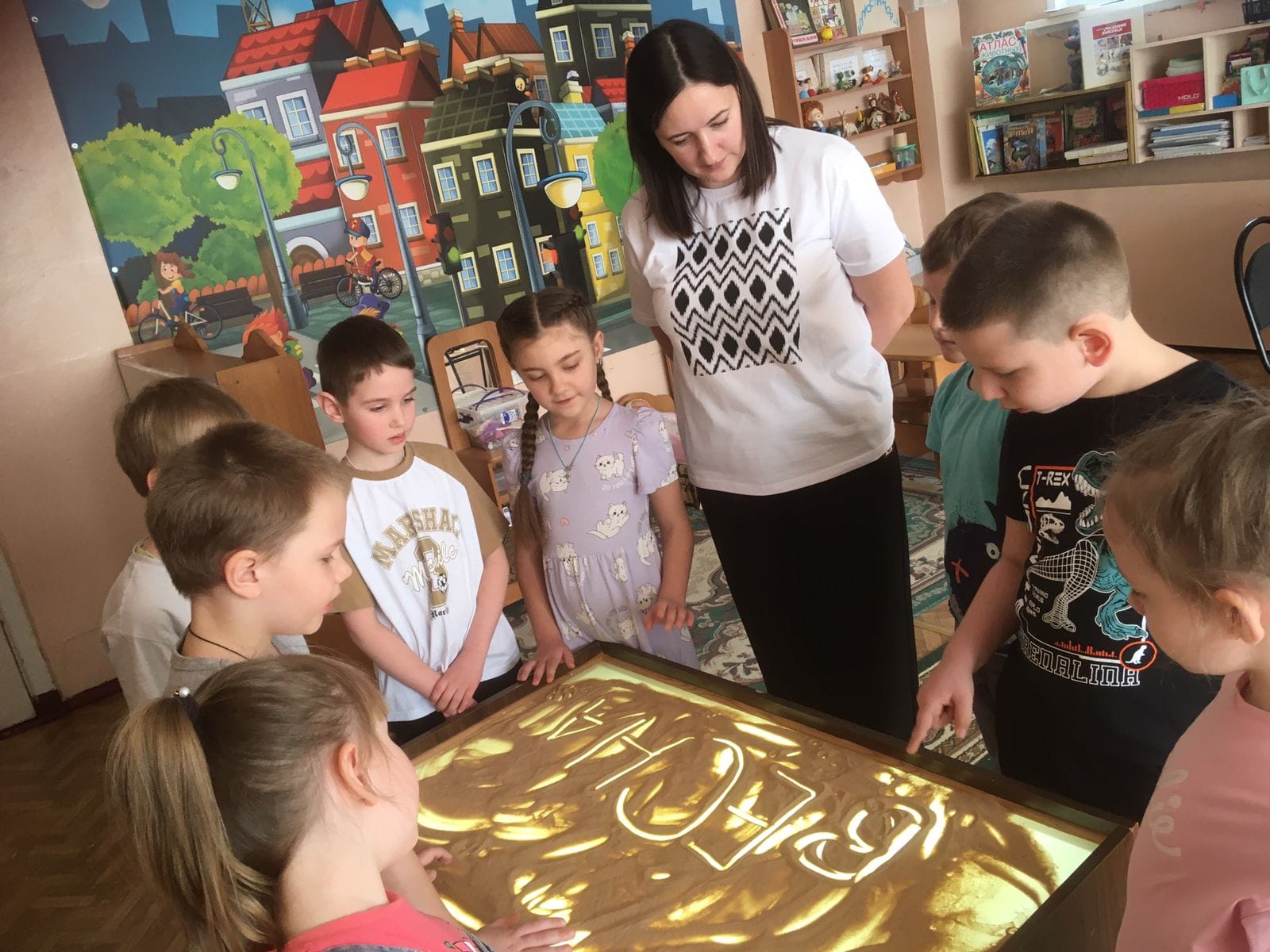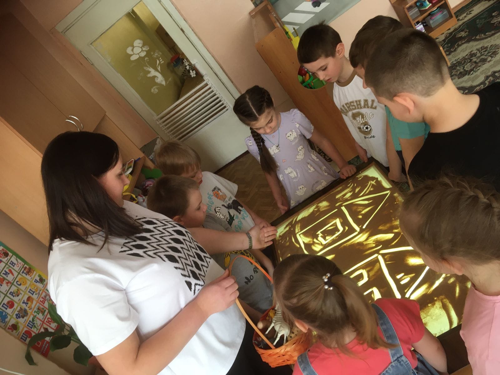 Кроме того, дети с интересом занимались за световым столом для рисования песком.