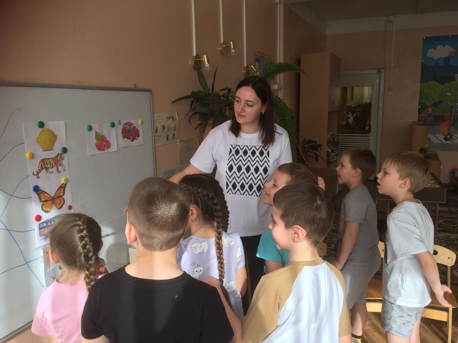Воспитатель Ручкина Анна Александровна в подготовительной к школе группе №9 провела организованную образовательную деятельность по ознакомлению дошкольников со звуковой культурой речи. На занятии использовались различные методы и приёмы. Дошкольники в процессе ООД искали место звука в слове, делили слова на слоги, составляли слова из заданного слова.