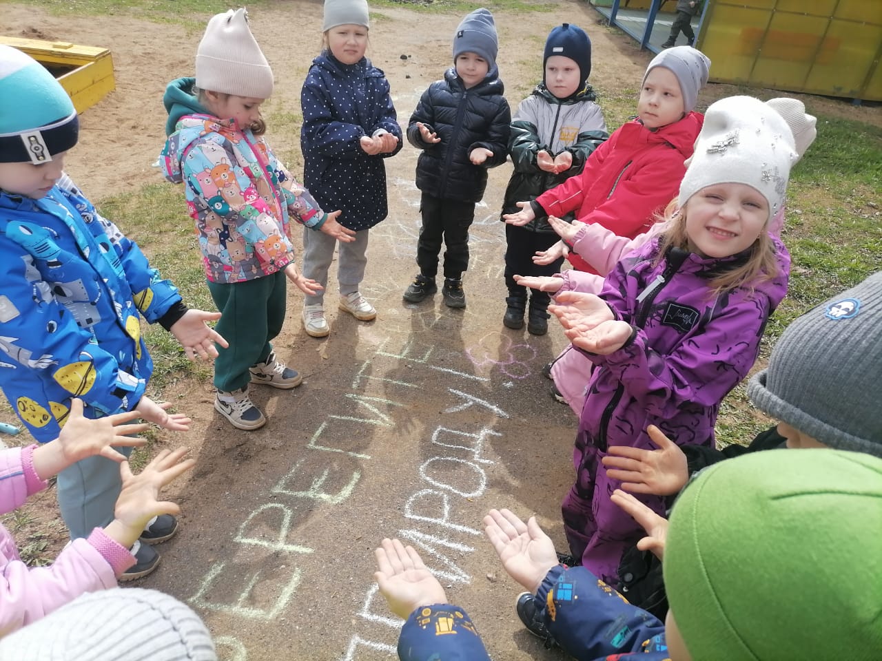 Дошкольники в своих рисунках на асфальте призывают беречь цветы, не ломать кусты и деревья. Прислушайтесь к призыву малышей!