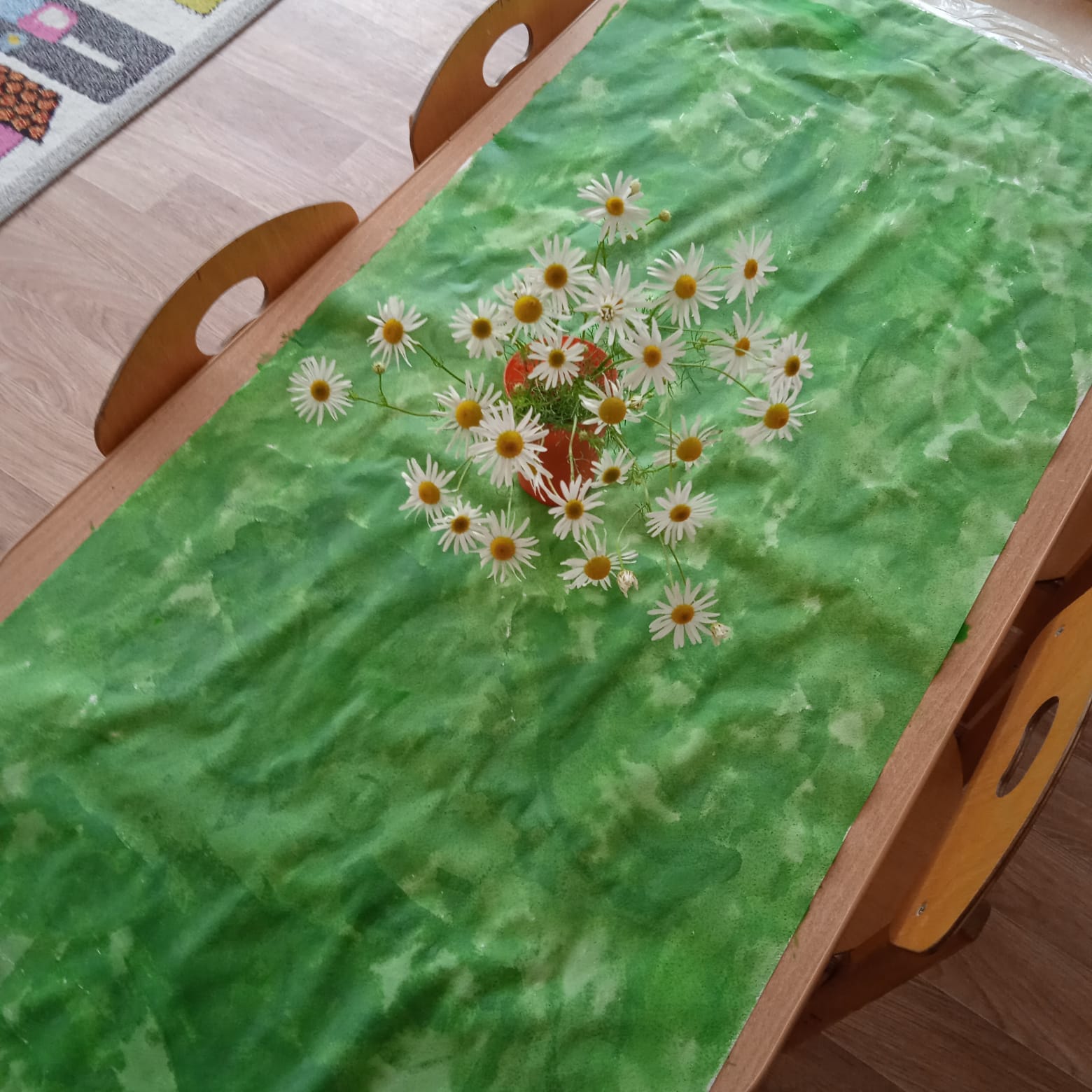 Золотая серединка,И лучи идут кругом,-Это может быть картинка:Солнце в небе голубом?Нет не солнце, на бумажкеНа лугу цветки ромашки.